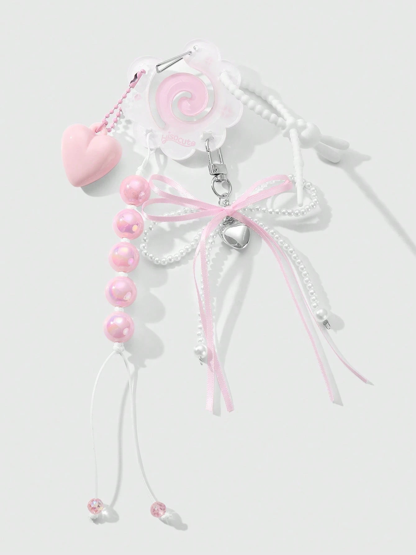 Kawaii 1pc Cute And Delicate Handmade Pearl Ribbon Bow, Colorful Acrylic Beads, Heart Hollow Out Fish Decoration DIY Keychain & Keyring, Versatile Accessory Suitable For Girls, Women, Daily Wear, Gift
