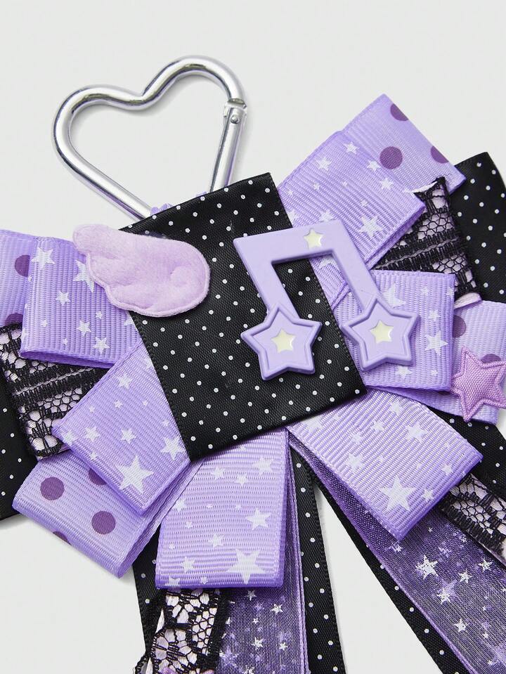 Kawaii 1pc Cute Blue Musical Note Lace Patchwork 3D Wing Y2K Star Foil Print Bow Keychain & Keyring, Handmade Lolita Campus Card Holder Bag Charm