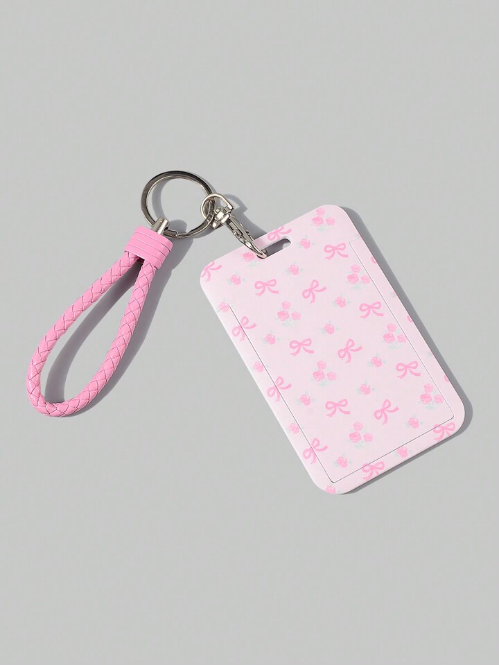 Kawaii 1pc Cute Bowknot Slide Cover Card Holder Case For ID/Access Cards, Back To School Valentines