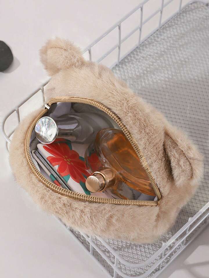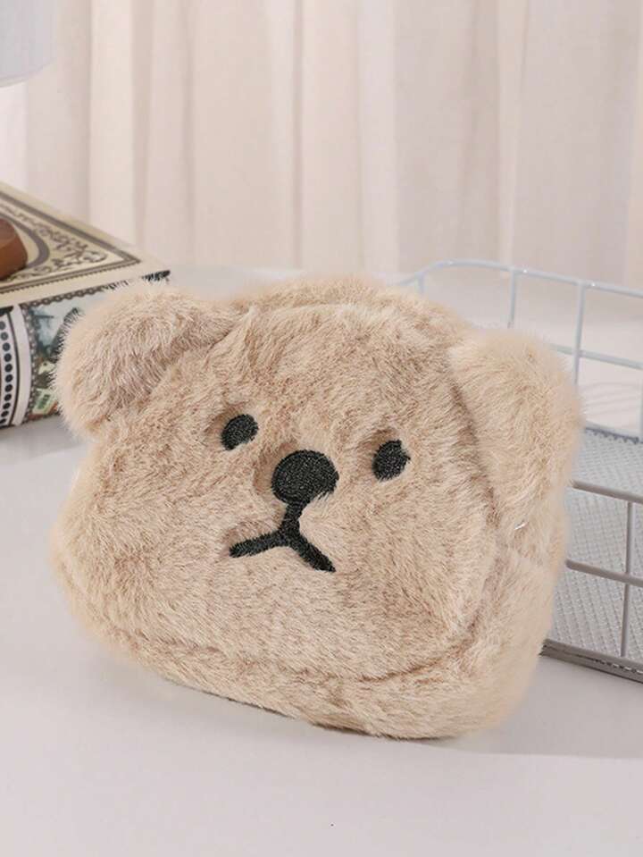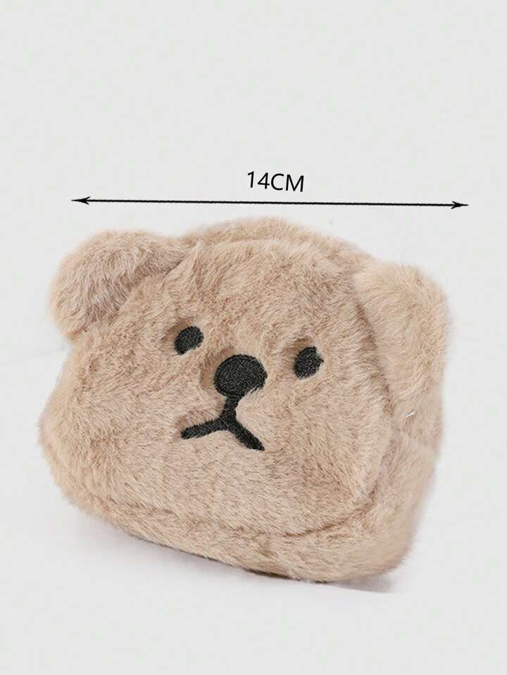 Kawaii 1pc Cute Cartoon Teddy Bear Plush Coin Purse, Portable Mini Storage Bag For Earphone, Lipstick