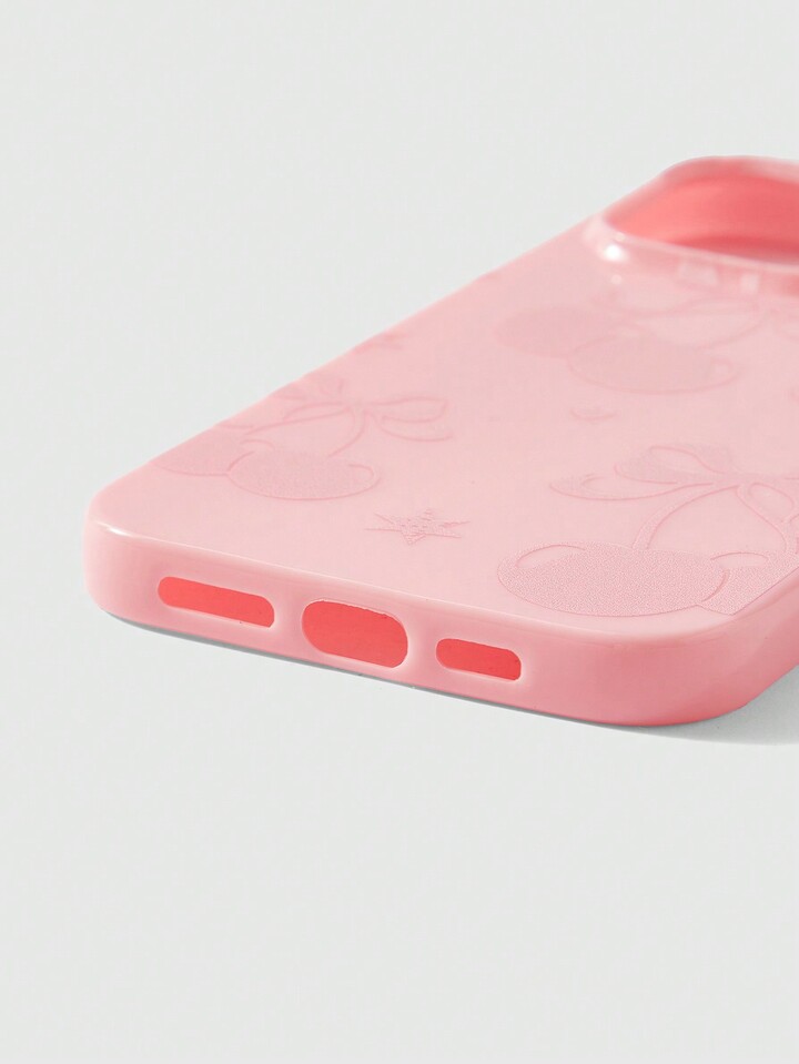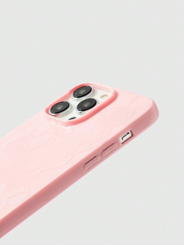 Kawaii 1pc Cute Pink Bowknot & Cherry Shiny Phone Case, Compatible With Iphone 11 12 13 14 15 Pro Max, Apple Case
