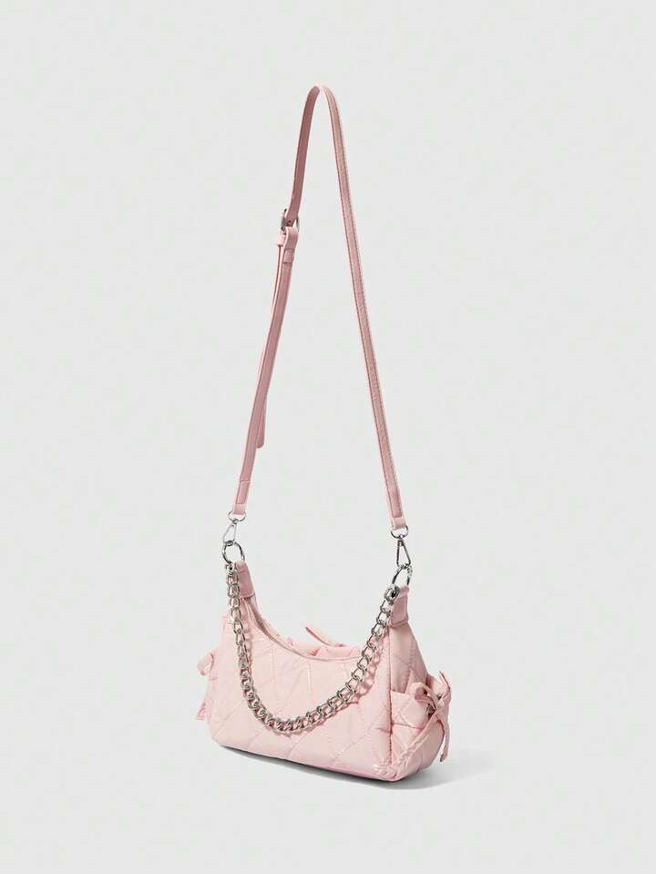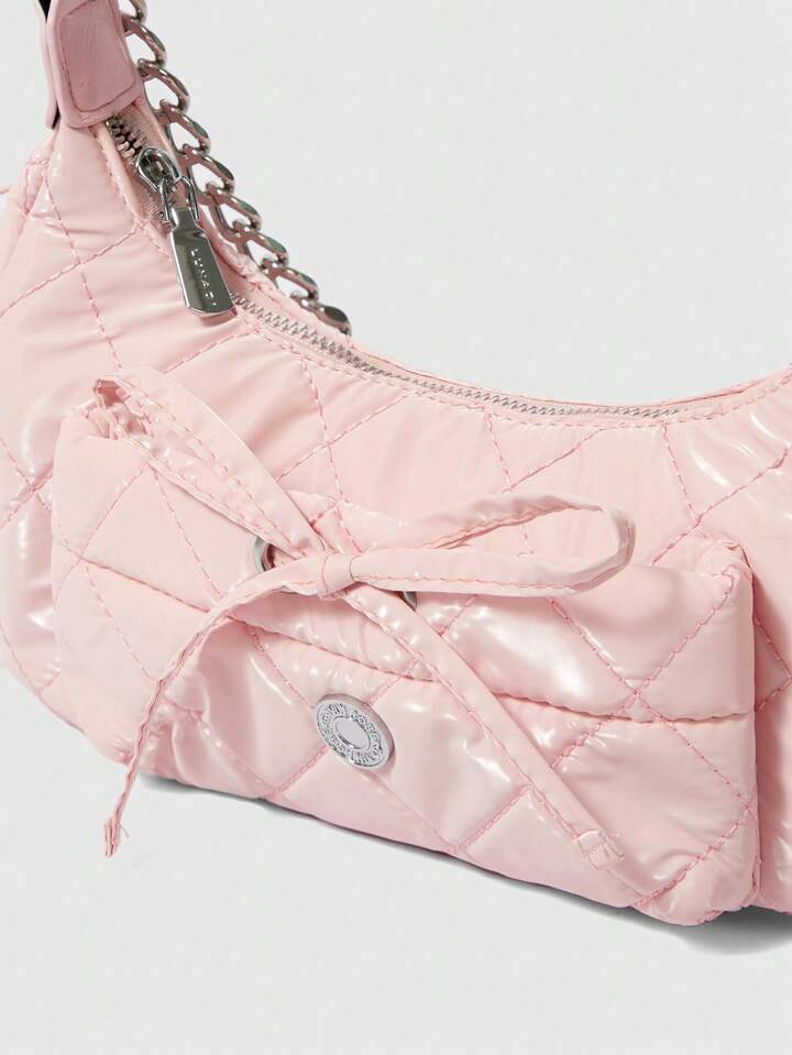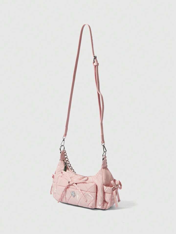 Kawaii 1pc Cute Pink Bowknot & Diamond Plaid Design Shoulder Bag