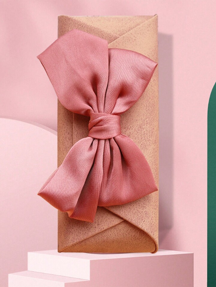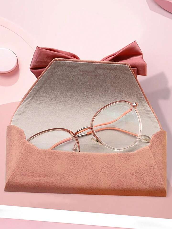 Kawaii 1pc Cute Pink Bowknot Women's Glasses Case, Convenient For Carrying