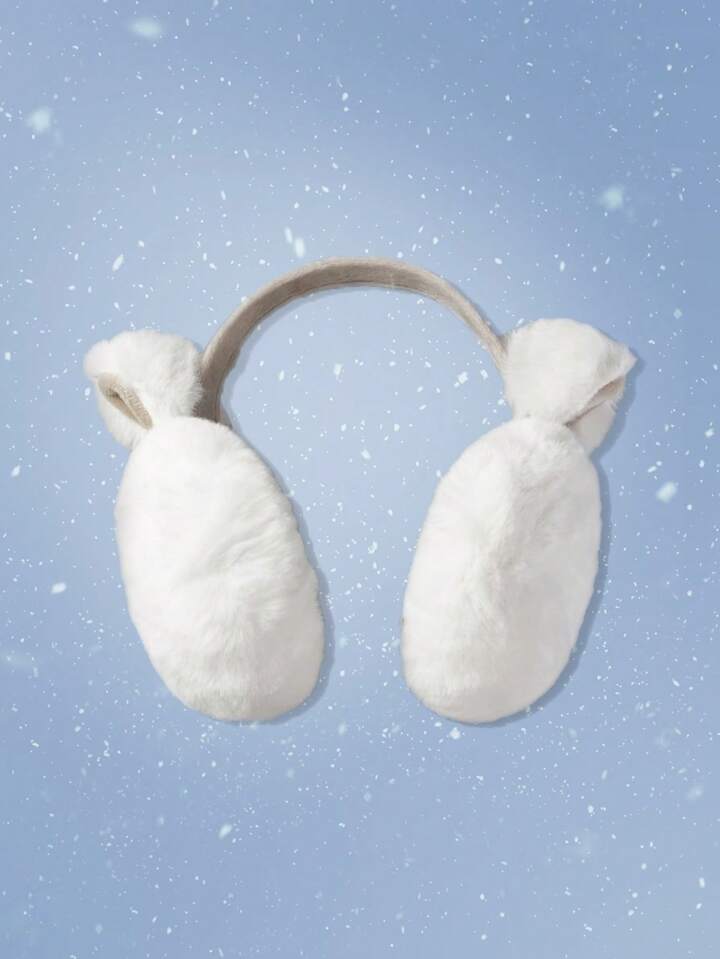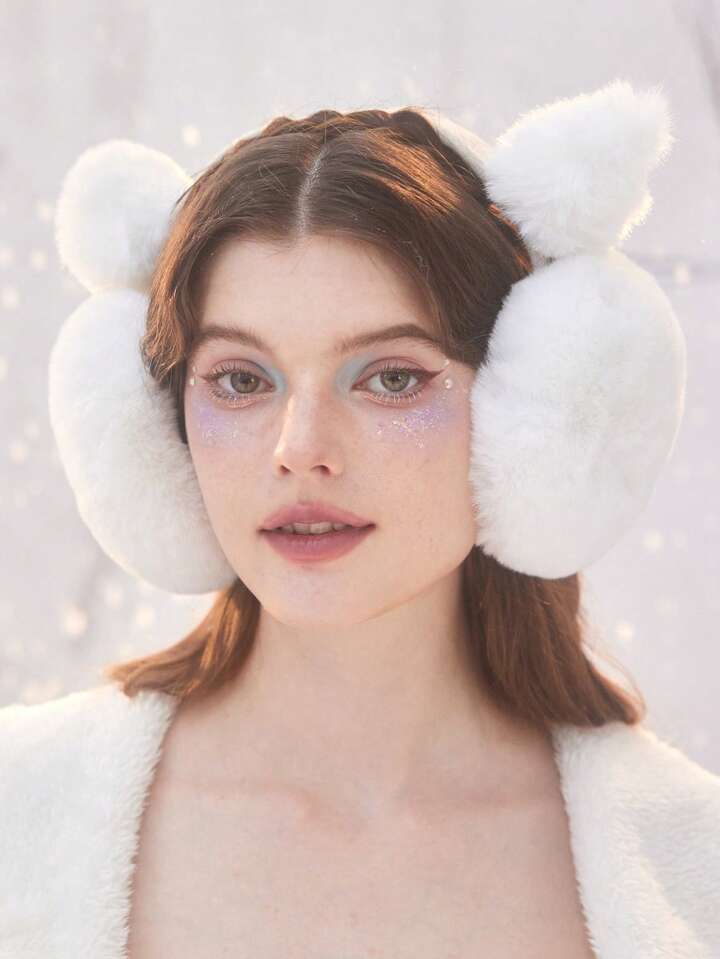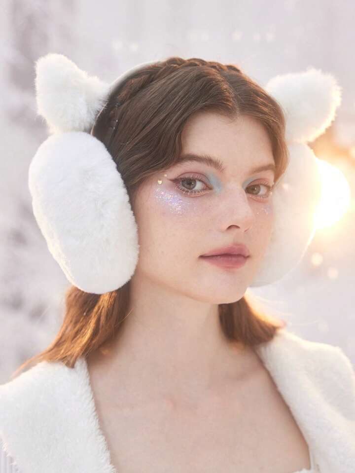 1pc Cute Solid Color Plush Earmuffs, Kawaii Cat Ear Shaped Earmuffs, Warm Winter Outdoor Earmuff, Foldable Freeze Proof Ear Warmers