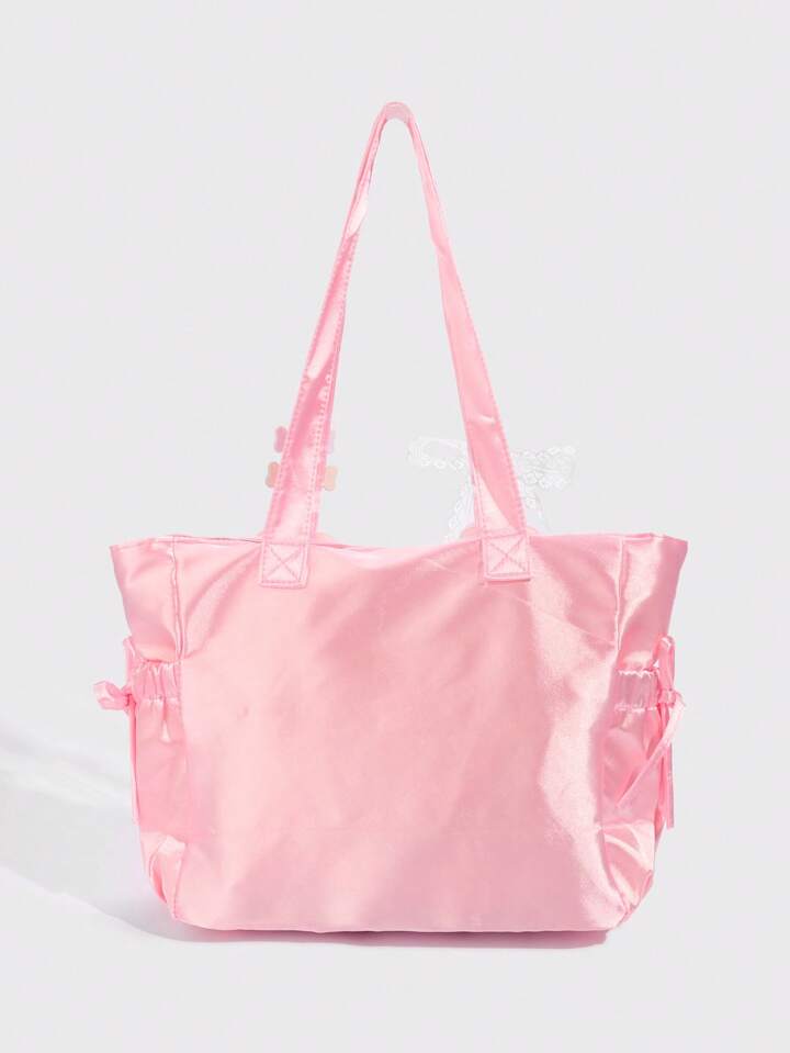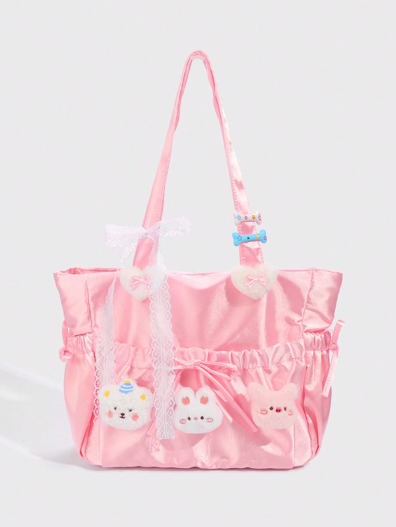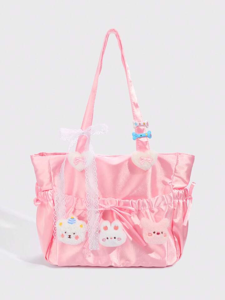Kawaii 1pc Cute Y2K Style Pink Shoulder Handbag, Adorable Plush Bow Decor, Suitable For Back To School, Birthday, Festival, Valentine's Day Gift