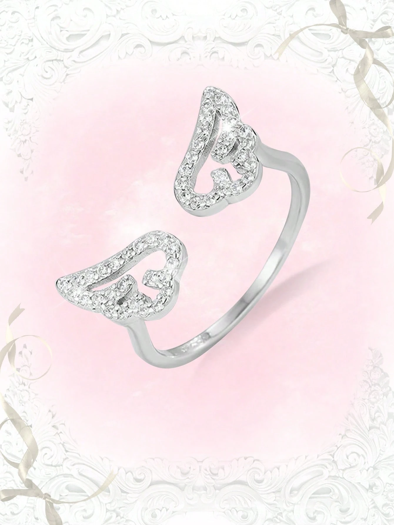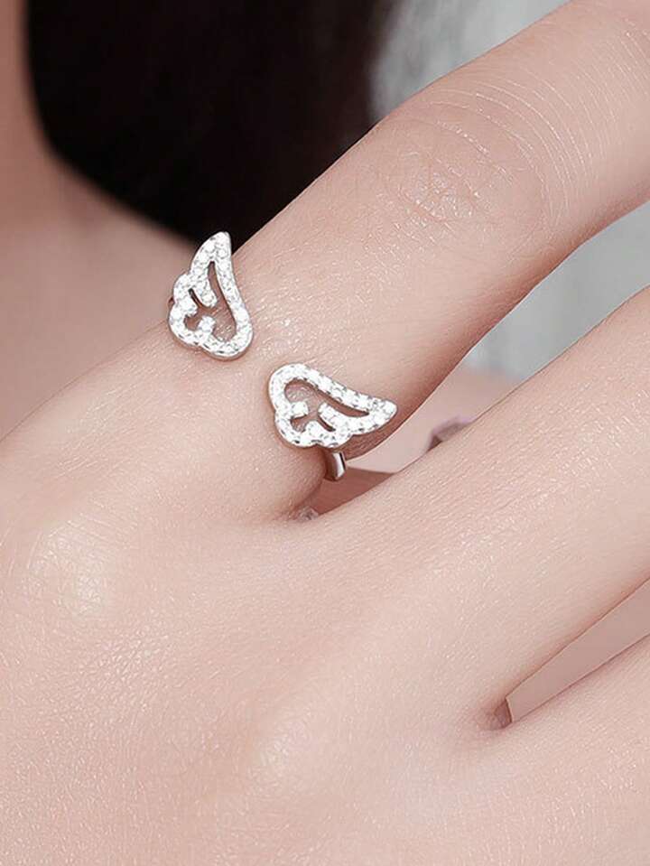 Kawaii 1pc Fashion Wing Shaped Zirconia Ring For Women, Perfect For Valentine's Day