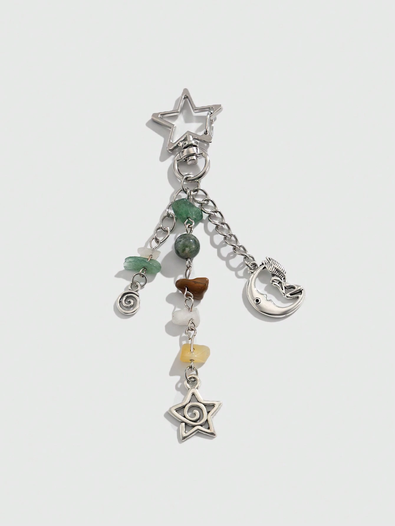 Kawaii 1pc Fashionable Hippie Geometric Swirl Star Moon Fairy Crystal Tassel Keychain Bag Charm