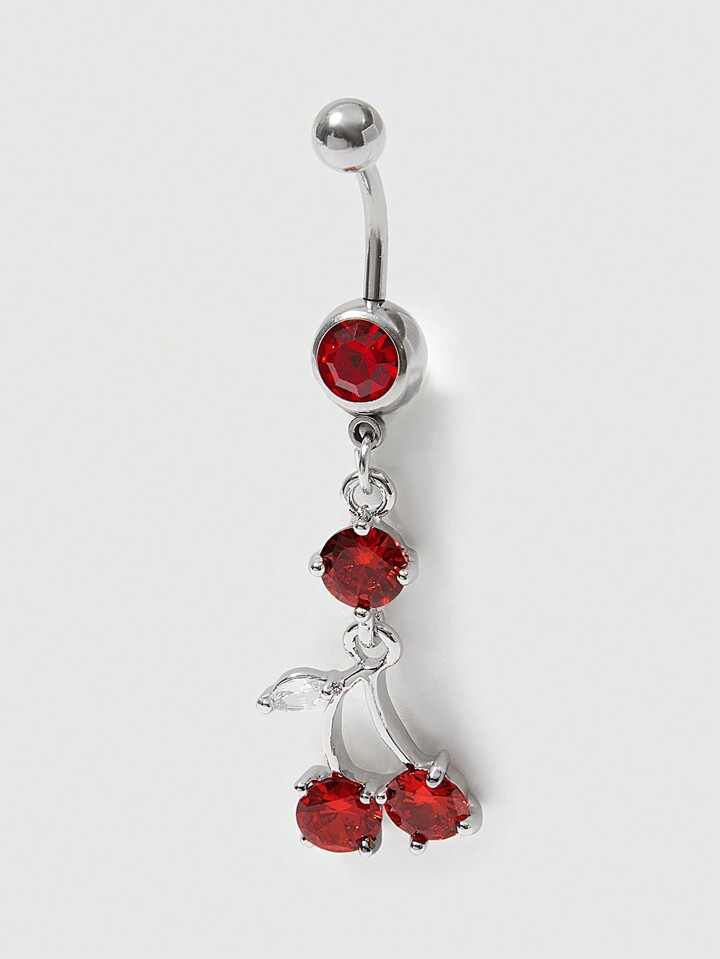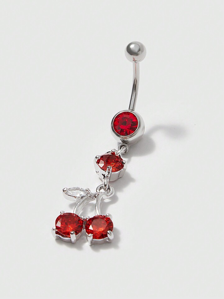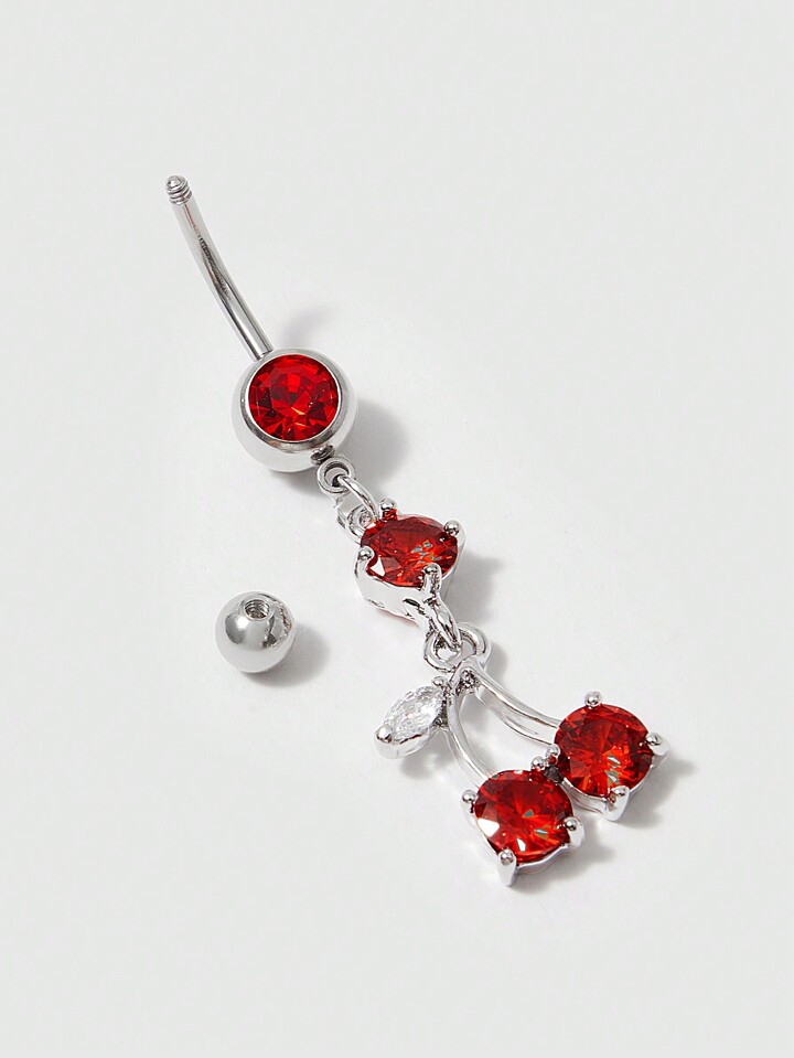 Kawaii 1pc Fashionable Stainless Steel Rhinestone Cherry Decor Belly Button Ring For Women Daily Wear