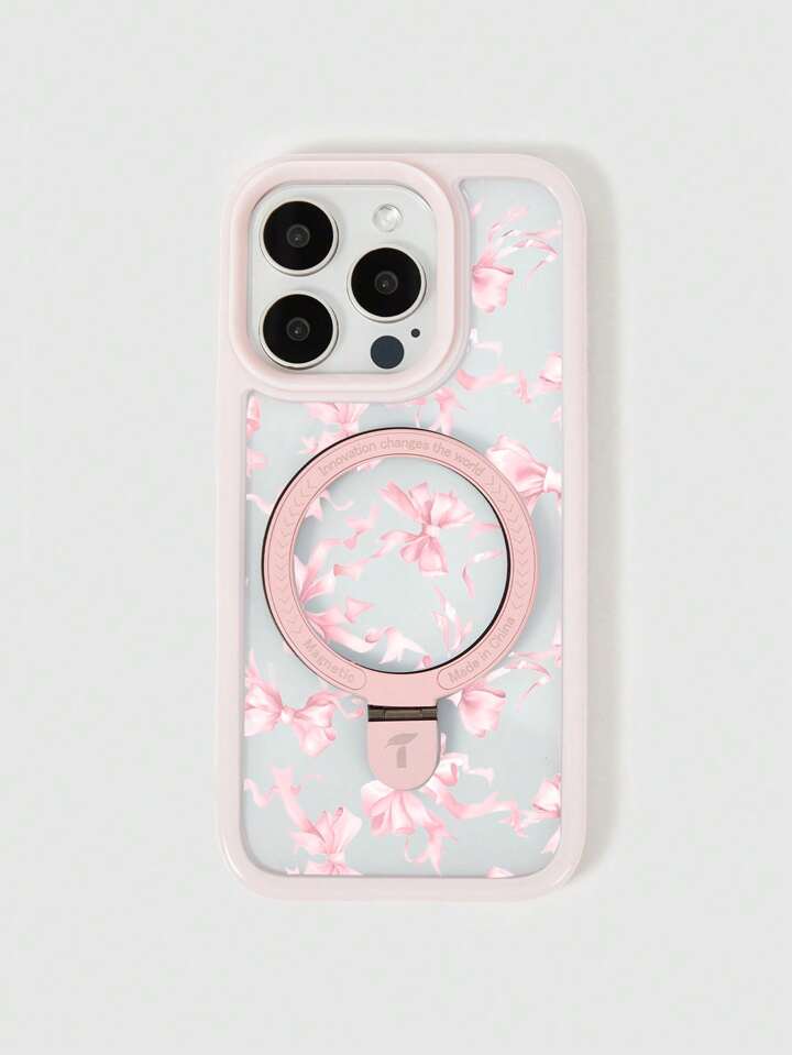 Kawaii 1pc Flowy Style Pink Bow Pattern Phone Case, Compatible With IPhone 11, 12, 13, 14, 15 Pro Max