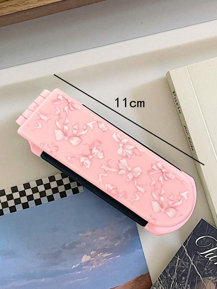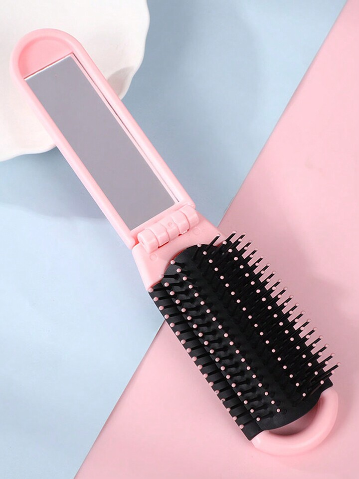 Kawaii 1pc Folding Pink Butterfly Print Hair Brush Compact With Mirror