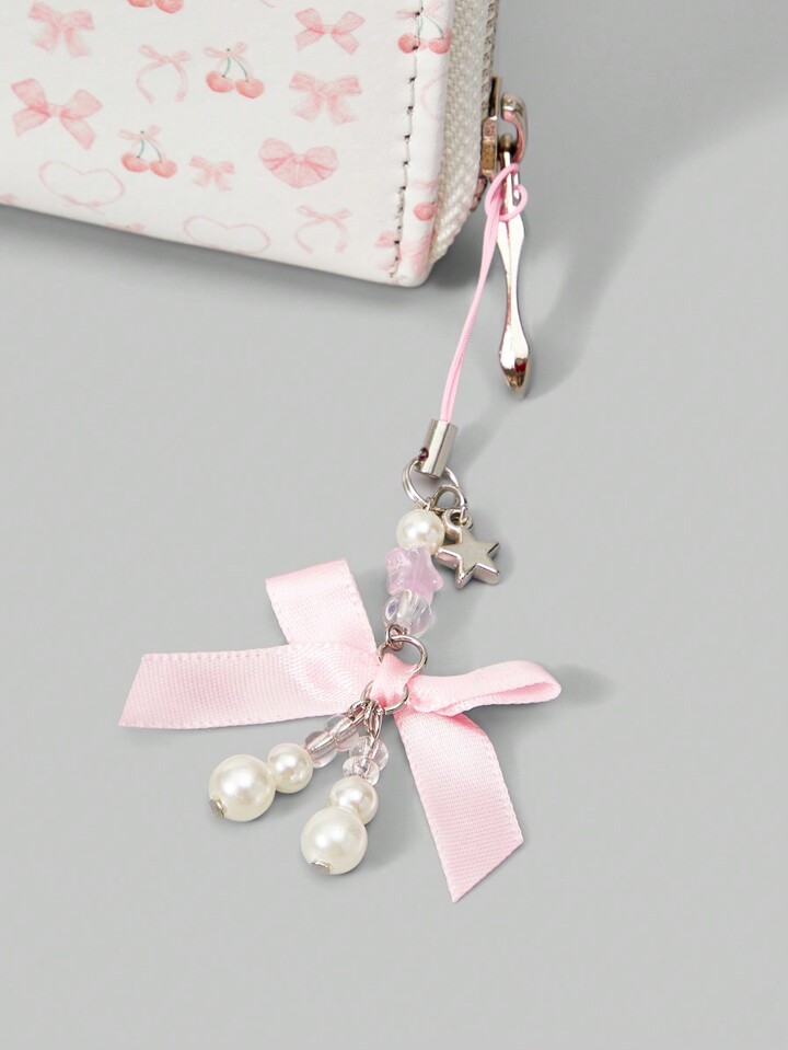 Kawaii 1pc Heart Shaped Bow Tie Design Simple Zipper Women Coin Purse