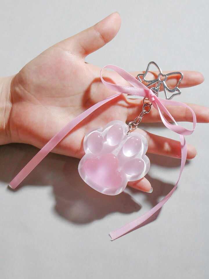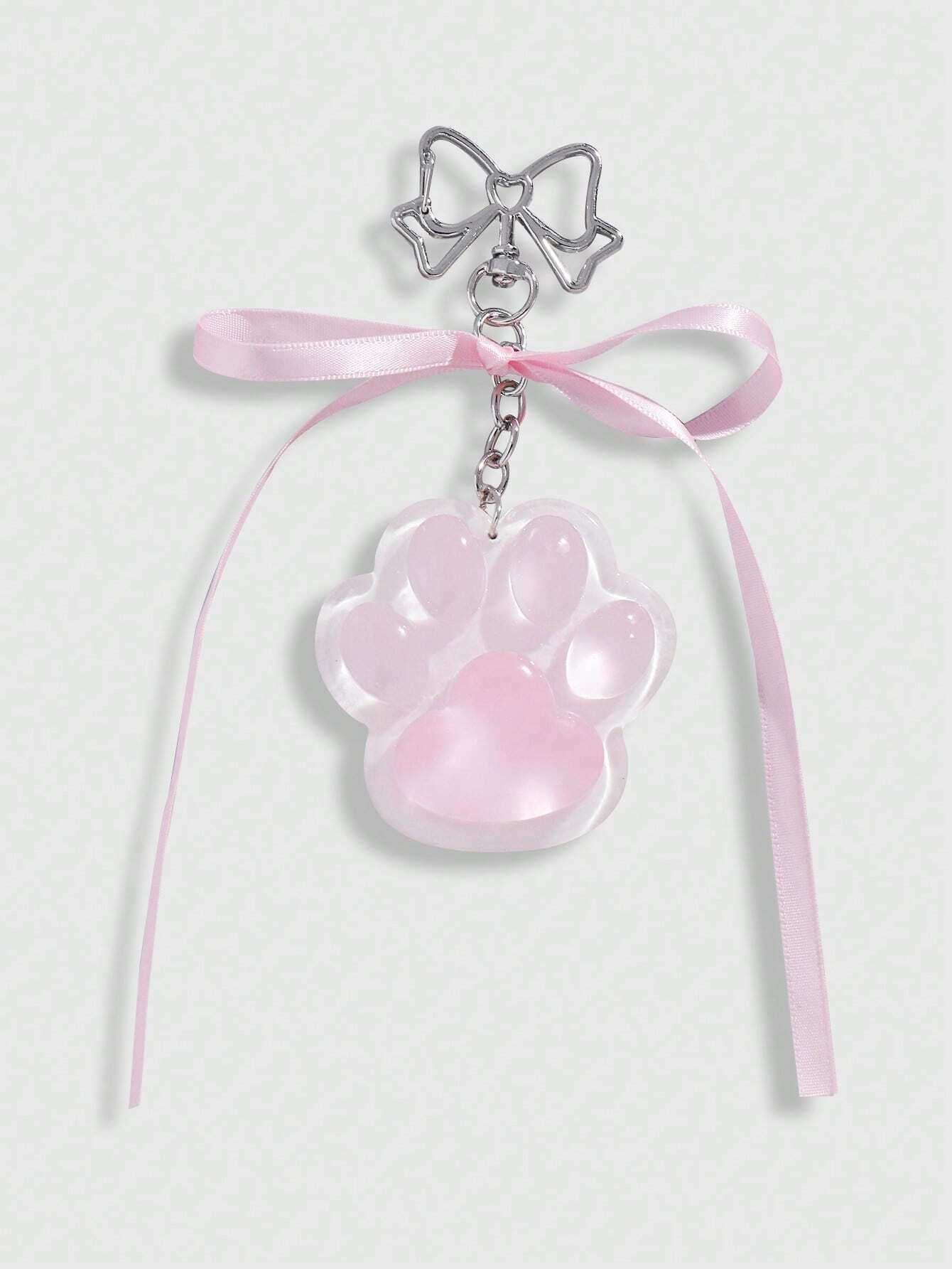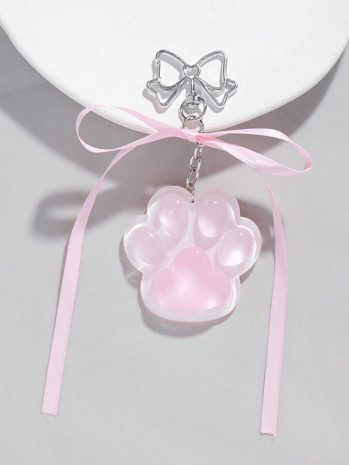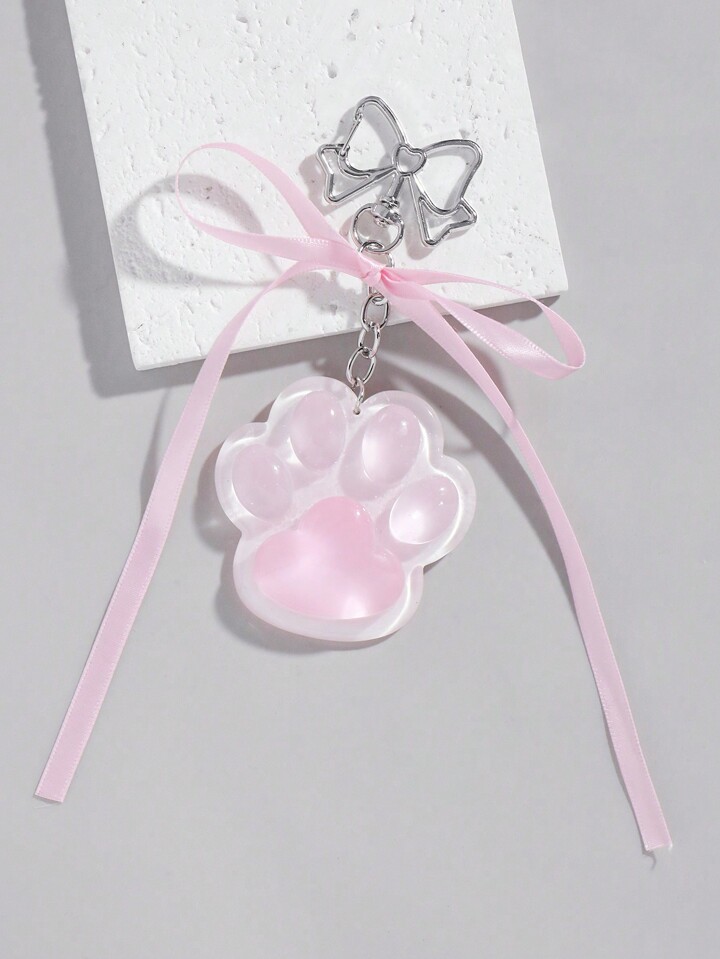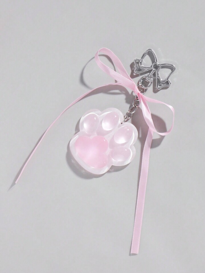 Kawaii 1pc Korean Style Cute Anime Cat Paw, Bow Ribbon Decor Keychain, Suitable For Women's Daily Wear And Holiday Gift, Bag Charm