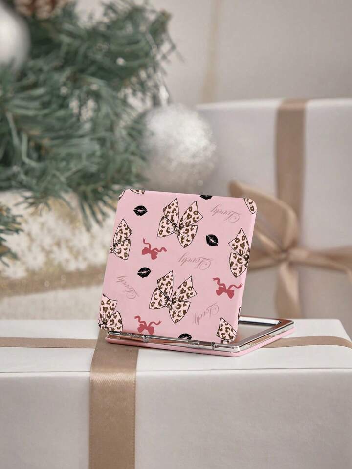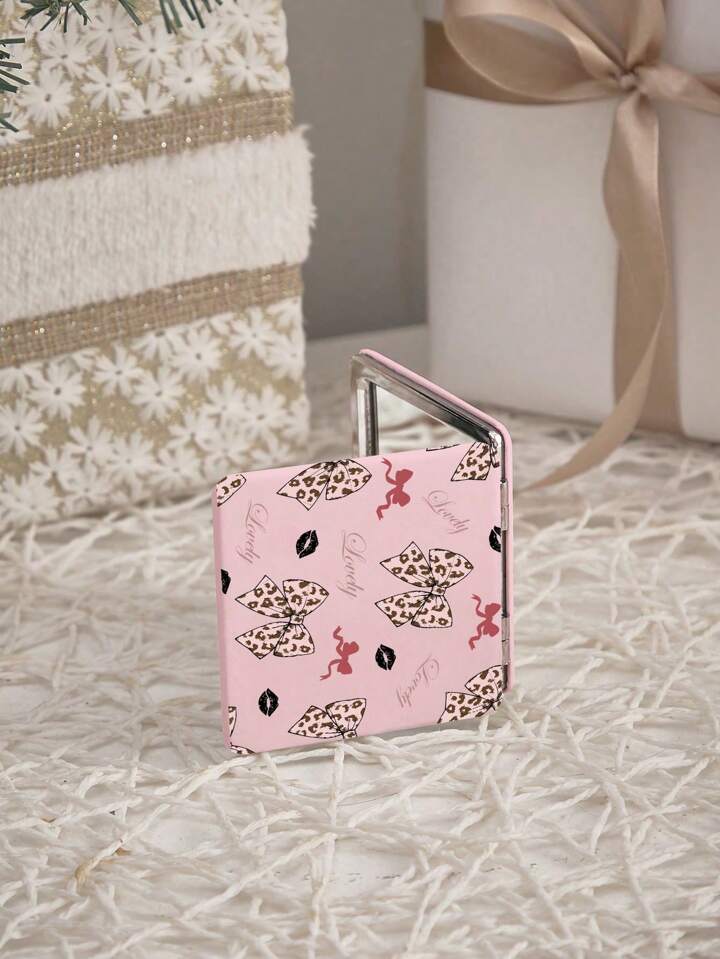 Kawaii 1pc Leopard Print Compact Square Makeup Mirror, Convenient Portable Handheld Mirror For Girls, Suitable As A Small Gift For Friends (Patterns Randomly Placed)