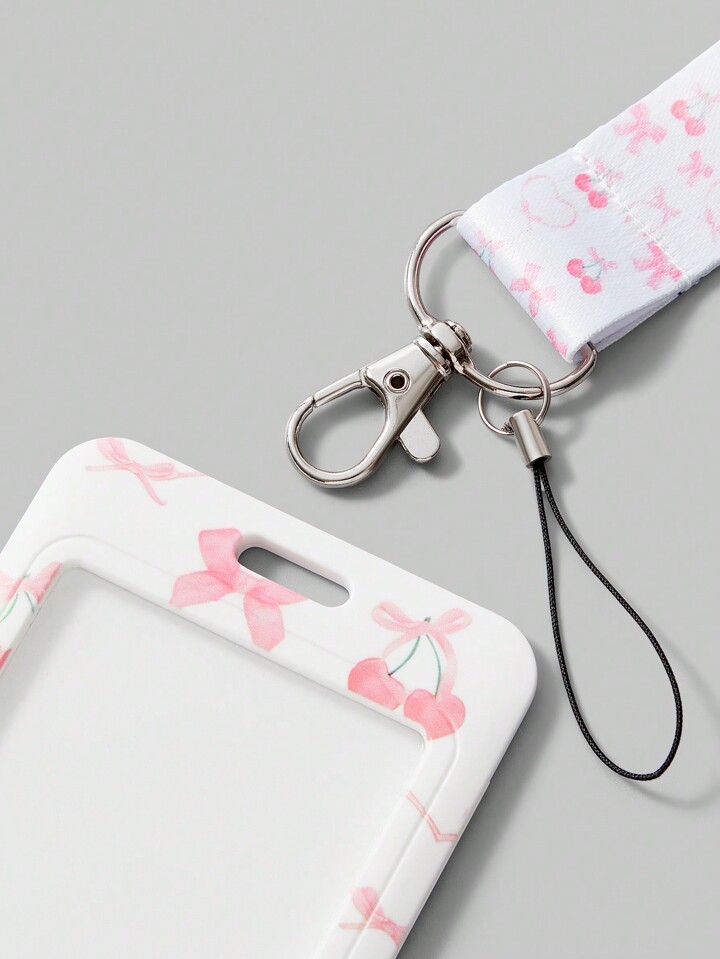 Kawaii 1pc Lovely Cherry Pink Bow Card Holder & Lanyard