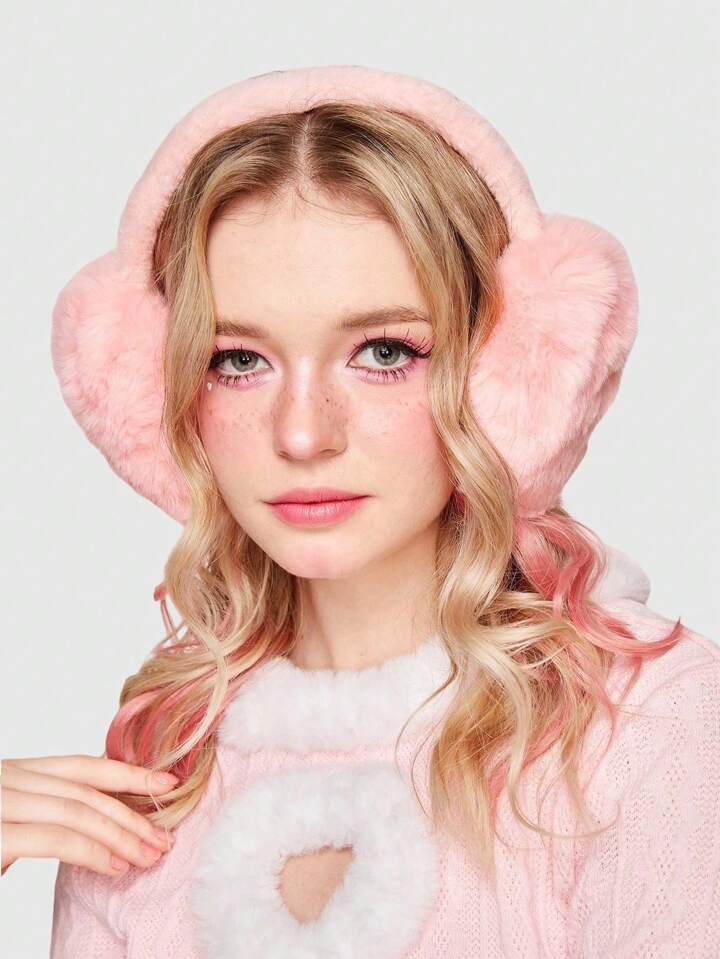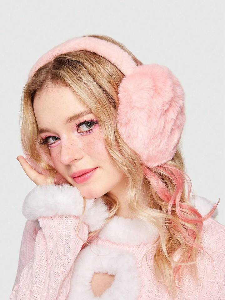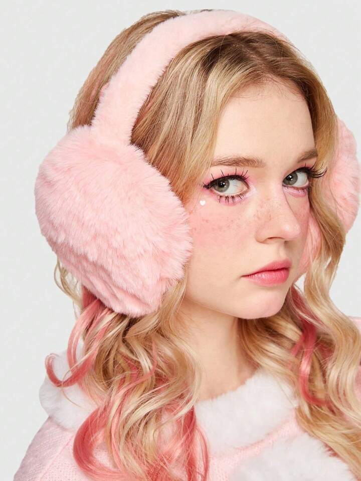 Kawaii 1pc Minimalist Solid Color Plush Earmuffs, Foldable Warm Ear Muffs For Winter, Cold-Proof Ear Warmers