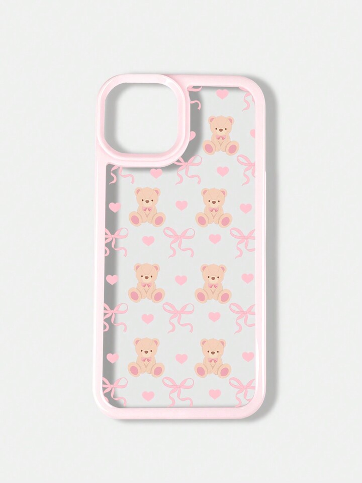 Kawaii 1pc Pink Bear & Bow Pattern Phone Case Compatible With Iphone 11 12 13 14 15 Pro Max 16