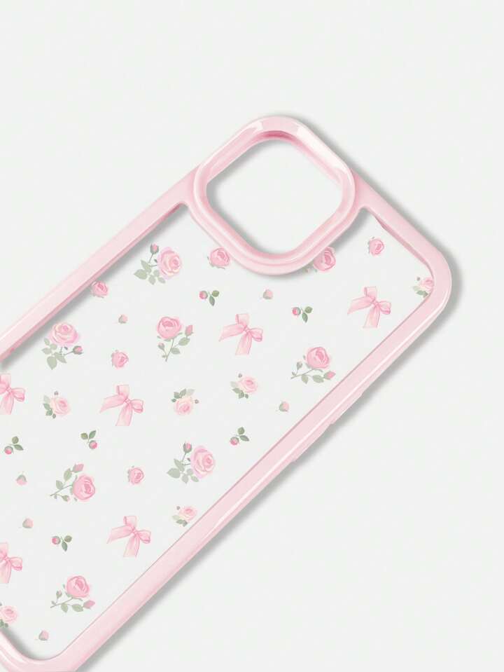 Kawaii 1pc Pink Bow & Rose Floral Pattern Phone Case Compatible With Iphone 11, 12, 13, 14, 15, Pro, Max, 16