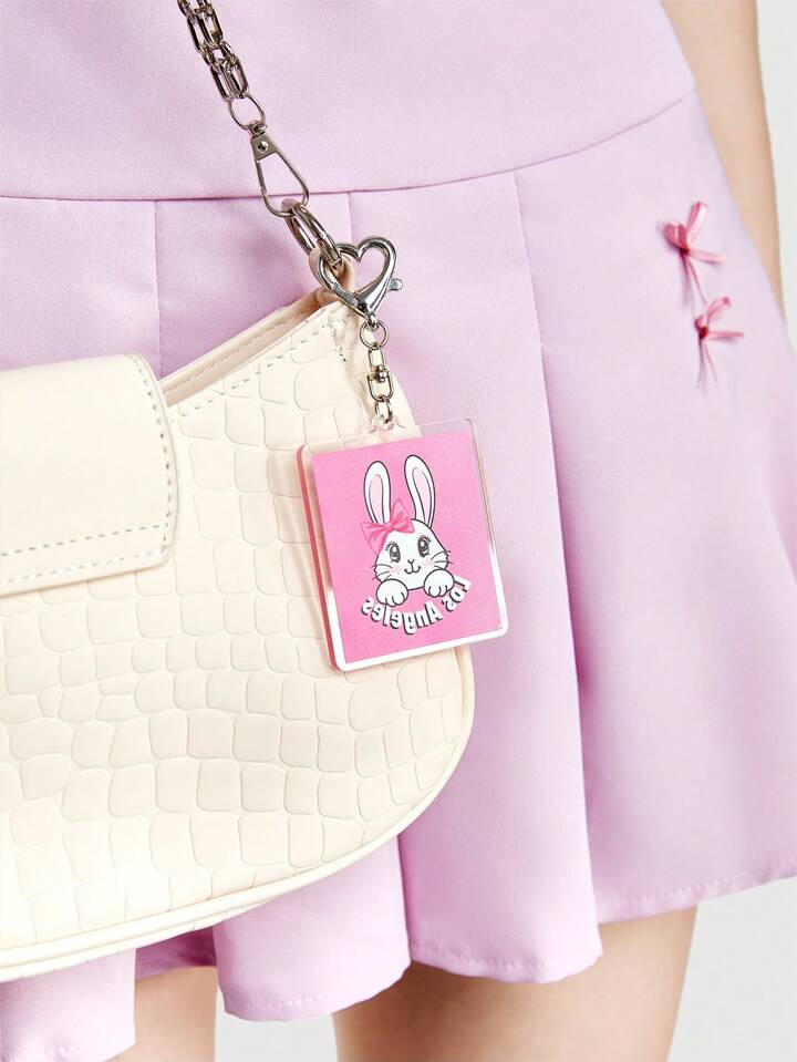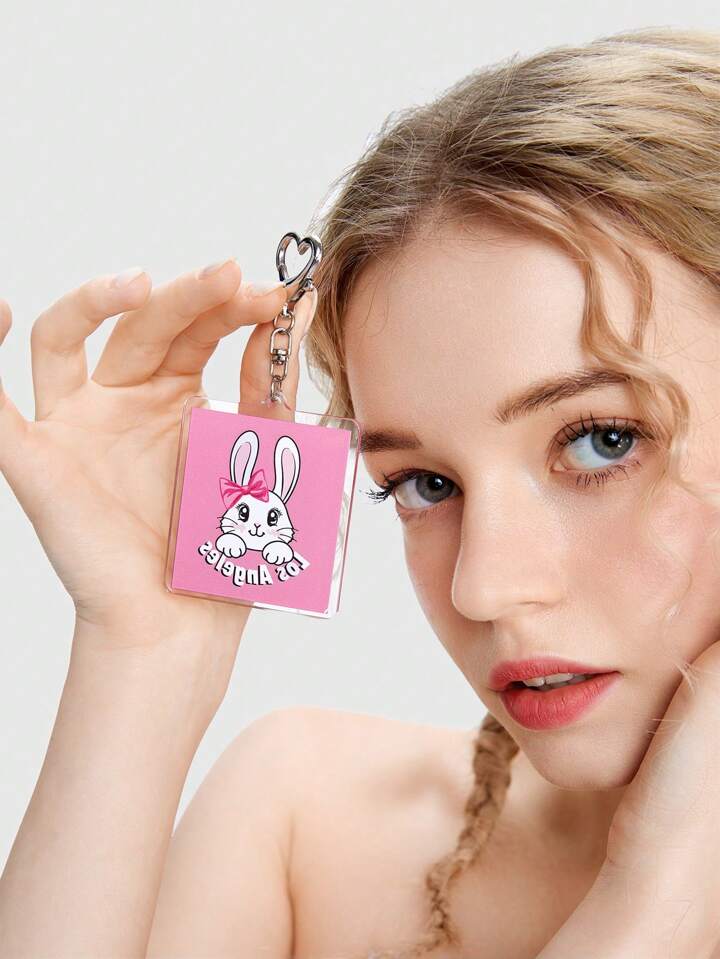 Kawaii 1pc Pink Rabbit Pattern Keychain & Keyring, 106488