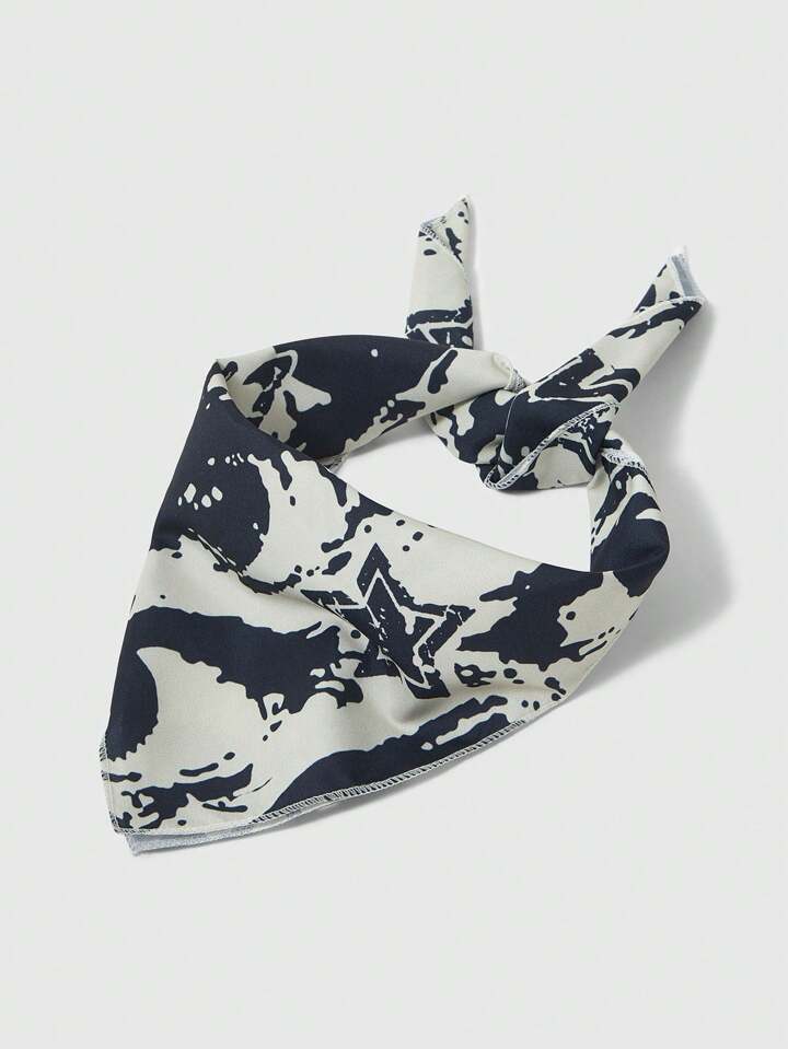 Kawaii 1pc Punk Style Eye & Star Print Small Square Scarf, Daily Versatile Y2K Vibe Scarf, Retro Exaggerated Bag Accessory Scarf, Creative Multi-Purpose Bandana