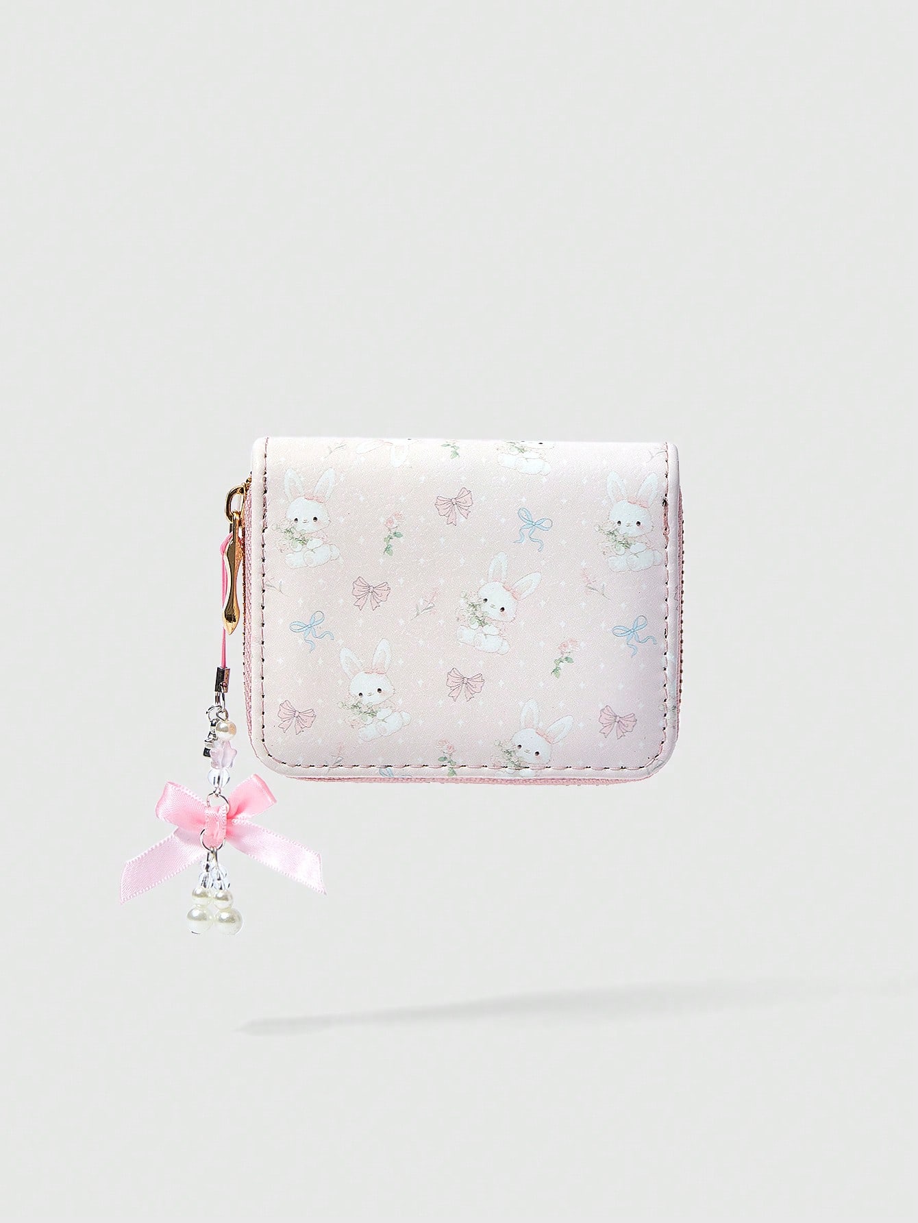 Kawaii 1pc Rabbit & Bow Pattern Allover Print Compact Wallet