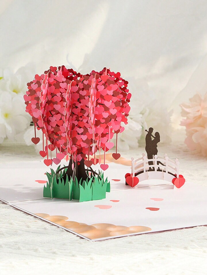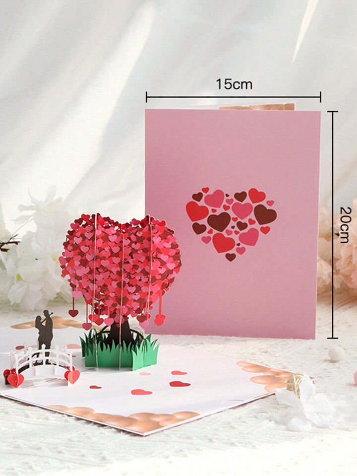 Kawaii 1pc Romantic 3d Valentine'S Day Tree Love Greeting Card