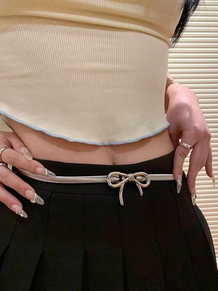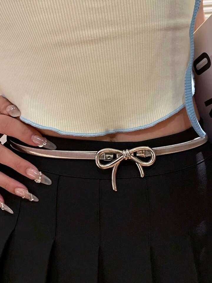 Kawaii 1pc Silver Bow Knot Women Waist Belt