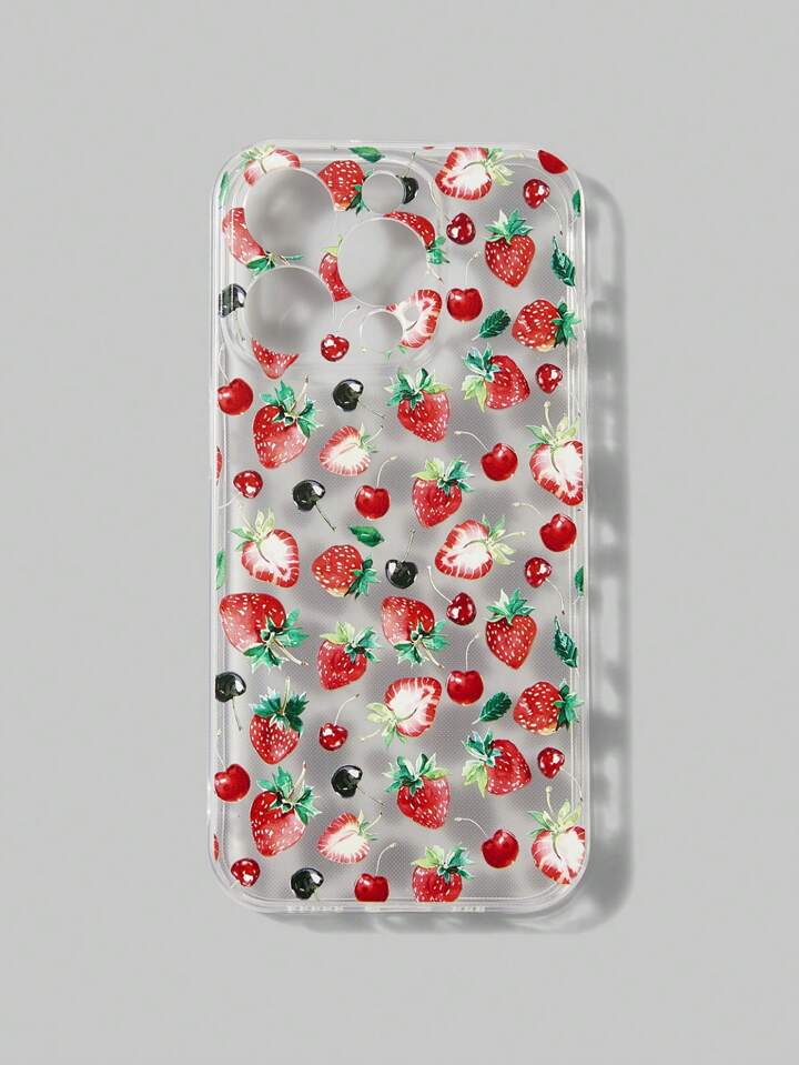 Kawaii 1pc Strawberry & Cherry Fruit Hollow Pattern Transparent Phone Case