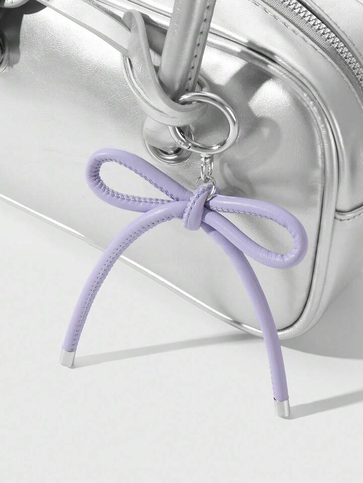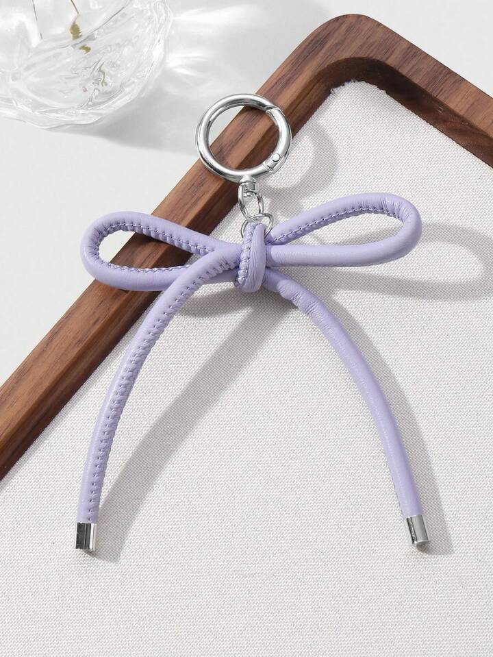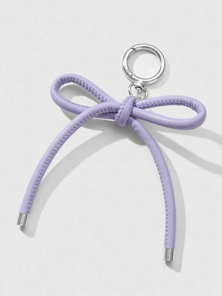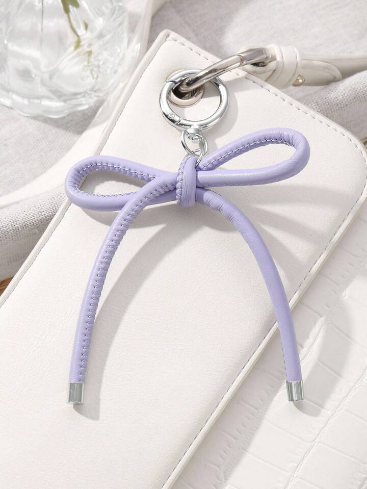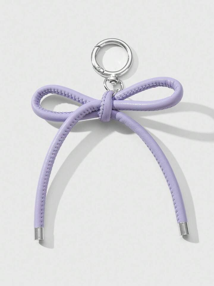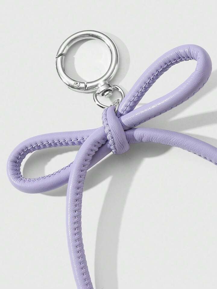 Kawaii 1pc Style Sweet & Cool Retro High-Quality Purple Leather Handmade Bow DIY Keychain/Bag Charm, Suitable For Women, Daily Wear Or Gift