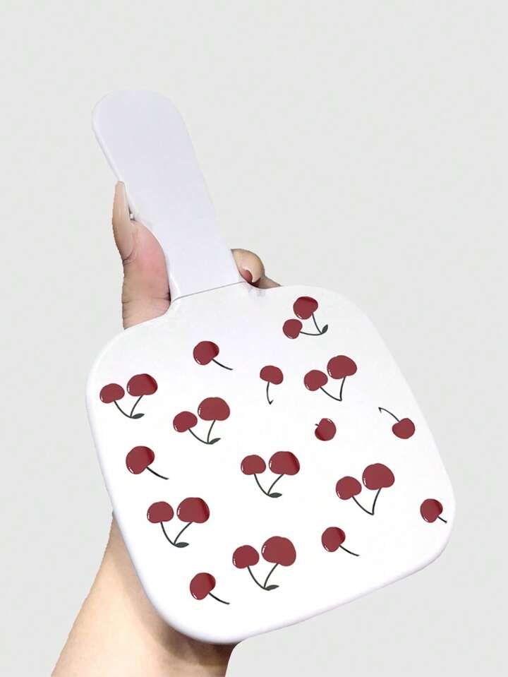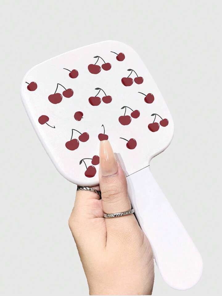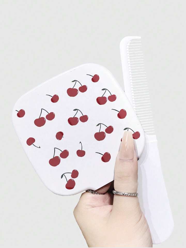 Kawaii 1pc Sweet Cherry Pattern Handheld Square Mirror, Cute Dual Function Mirror & Comb, High Quality Fashion Makeup Mirror