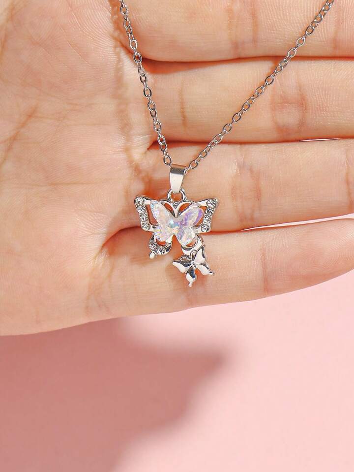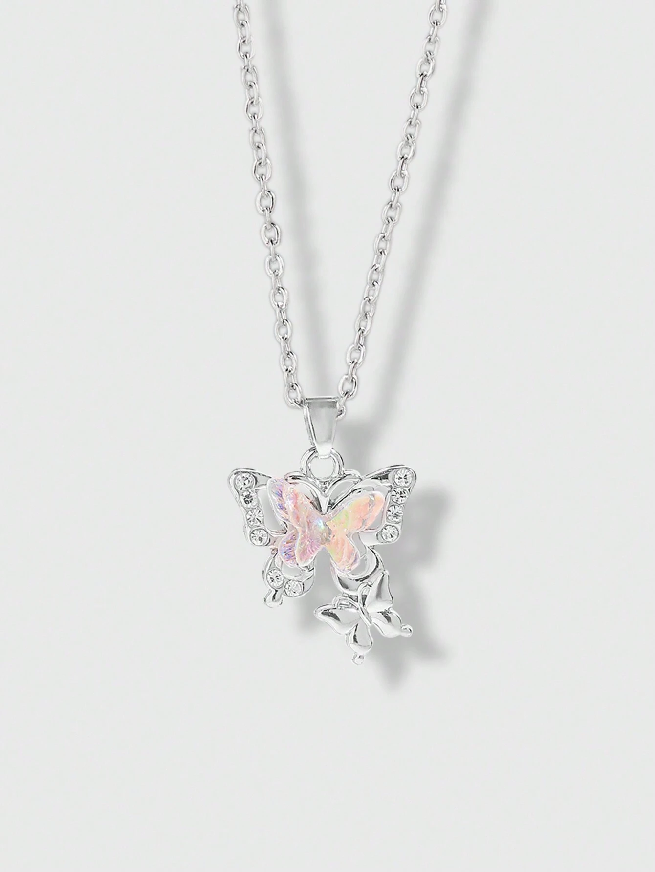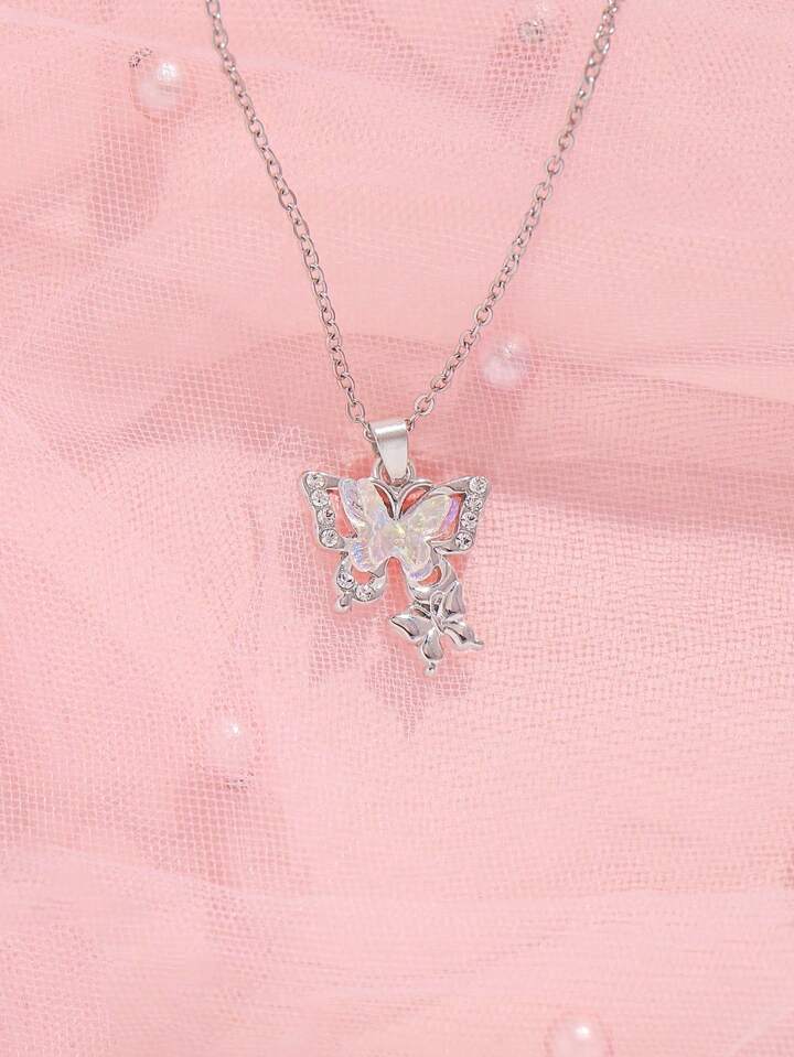Kawaii 1pc Sweet & Cool Couple Style Fairy Tale Forest Themed Multiple Color Rhinestone Decor Butterfly Pendant Necklace