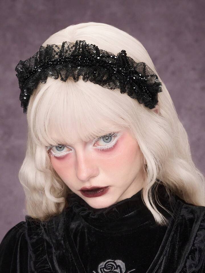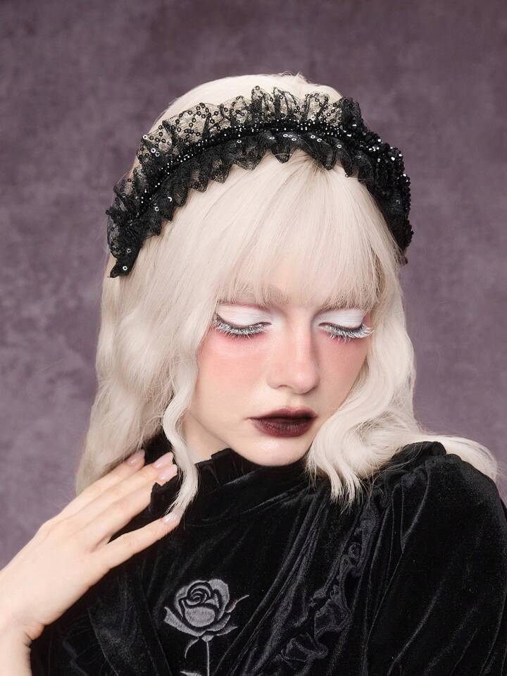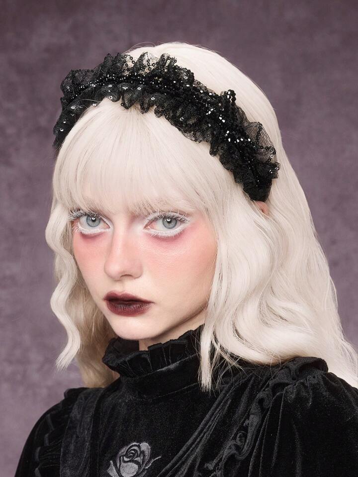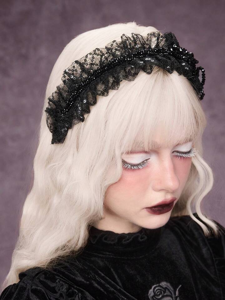 Kawaii 1pc The Doll Museum Signature Black Beaded Lace Headband Hair Band Hair Hoop