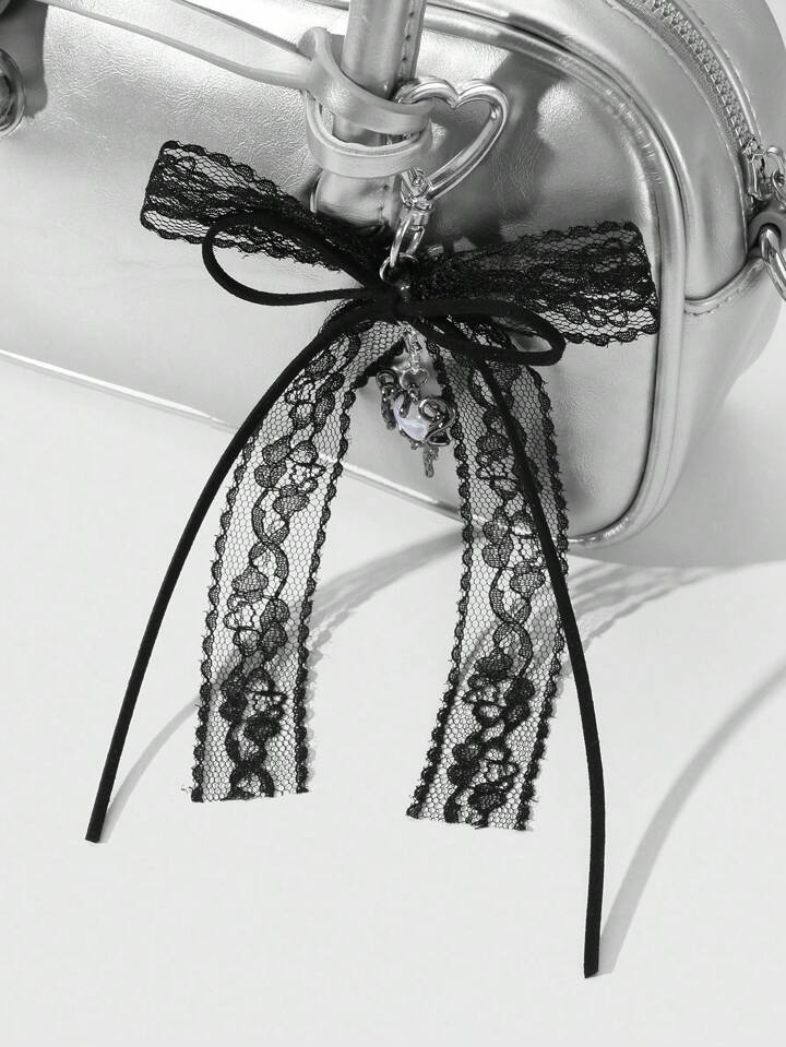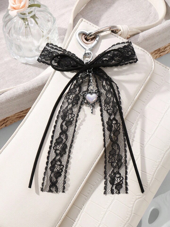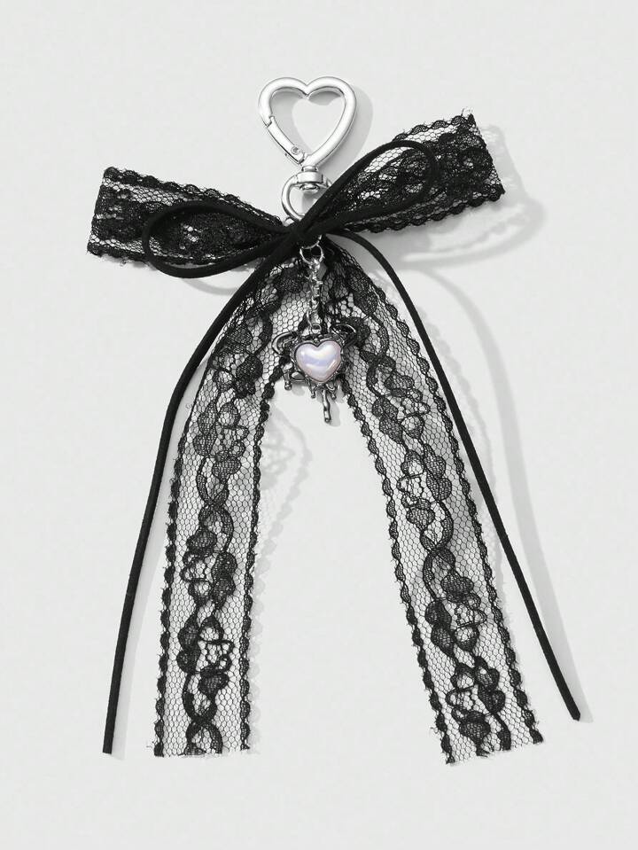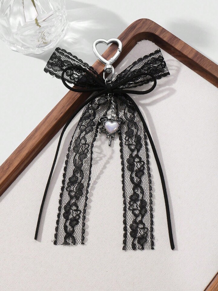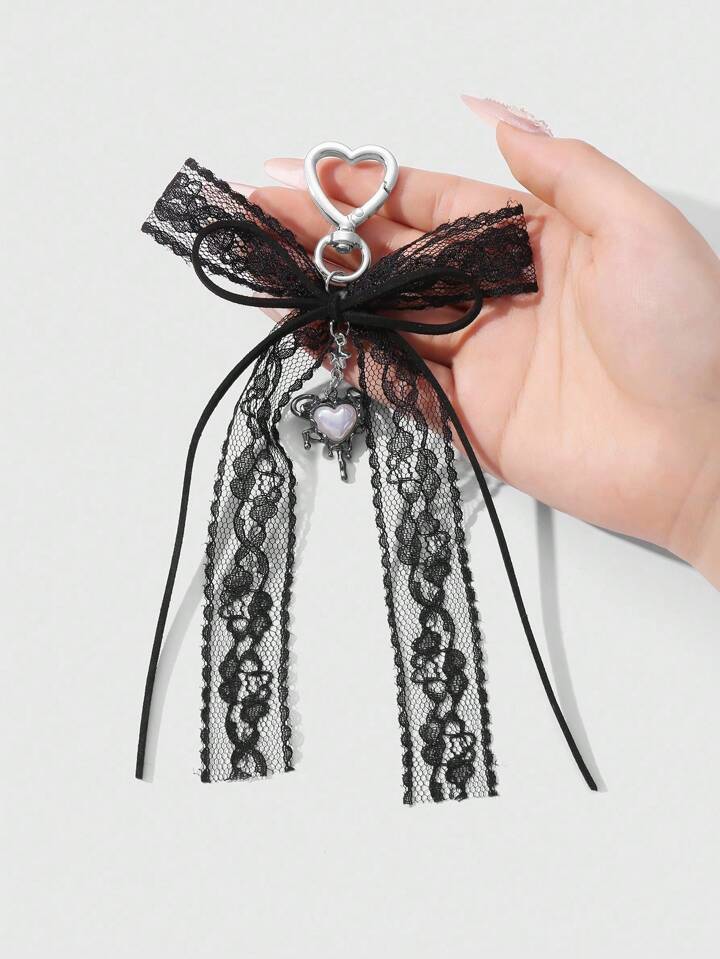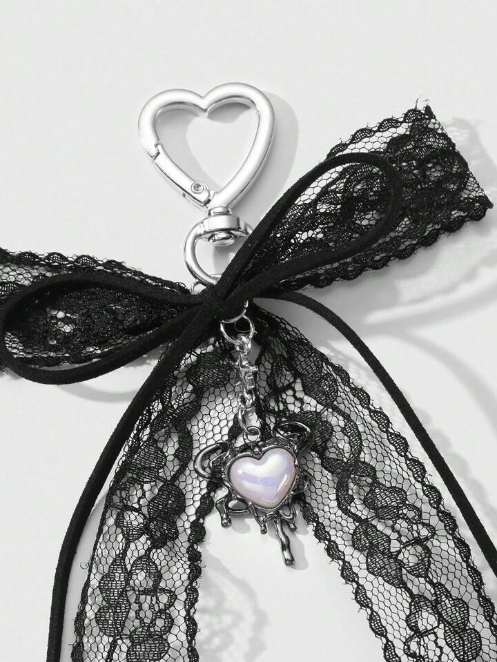 Kawaii 1pc Vintage Y2K Goth Dark Style Black Velvet Lace Bow Star Liquid Resin Heart DIY Keychain Bag Pendant, Suitable For Women, Great For Daily Wear And Holiday Gift, Halloween