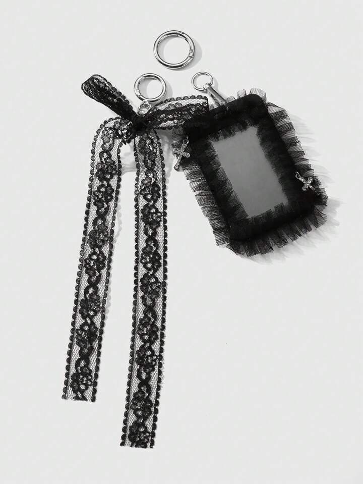 Kawaii 1pc Y2K Retro Gothic Style Lace Net Bow Crystal Cross DIY Card Keychain Charm, Suitable For Office Worker, Student, Daily Wear, Festival Gift, Halloween
