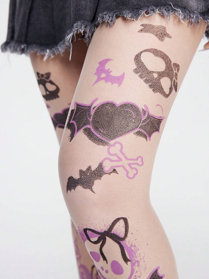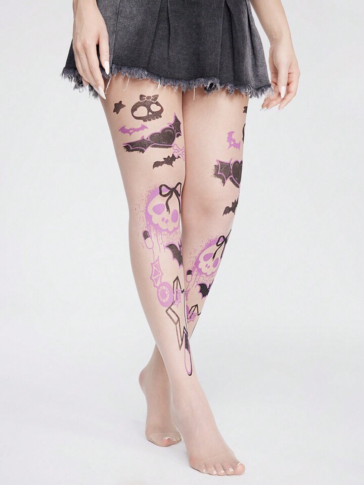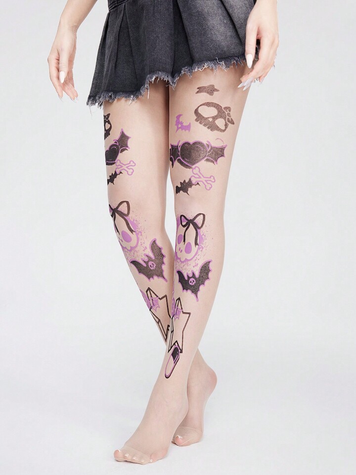 Kawaii 1pc Y2K Skull Heart Star Print Pantyhose Tights, For Cosplay, Festival