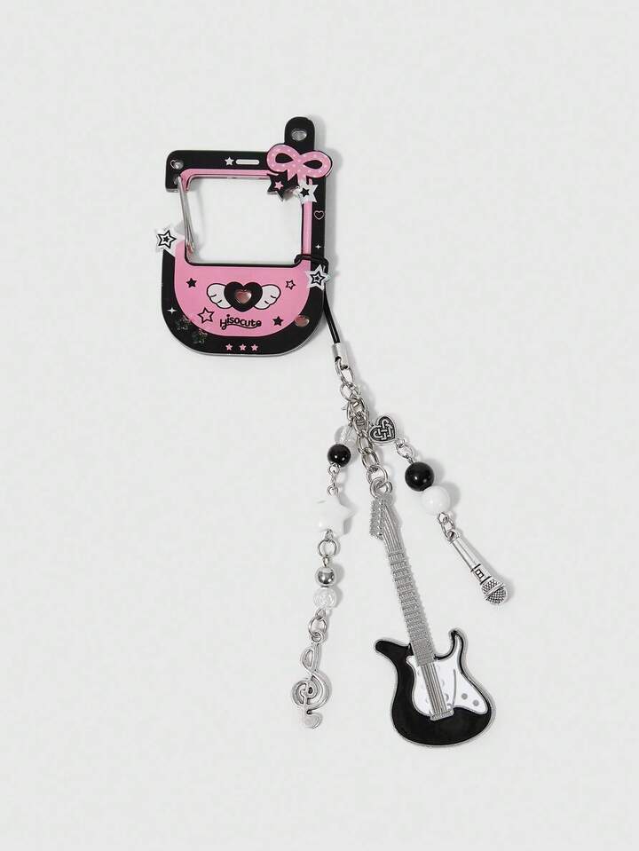 Kawaii 1pc Y2K Style Acrylic Star Guitar Instrument Pendant, Cute Stylized Phone Charm Accessory