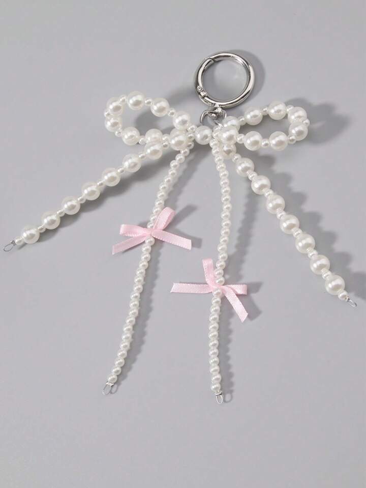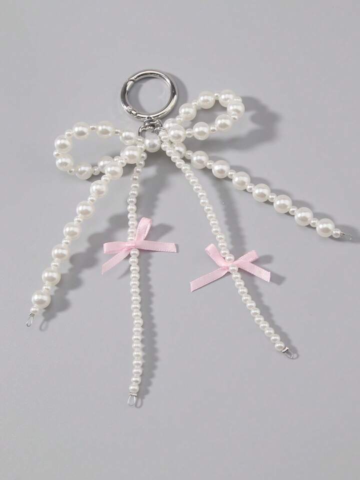 Kawaii 1pc Y2k Sweet Faux Pearl Bow Keychain, Pink Bow Tie Women's Bag Charm, Holiday Gift
