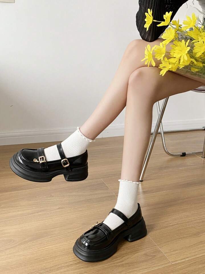 Kawaii 2024 New Autumn Women's Thick-Soled Mary Jane Shoes, French & Japanese Style JK Shoes, Oxford Low-Heeled Shoes