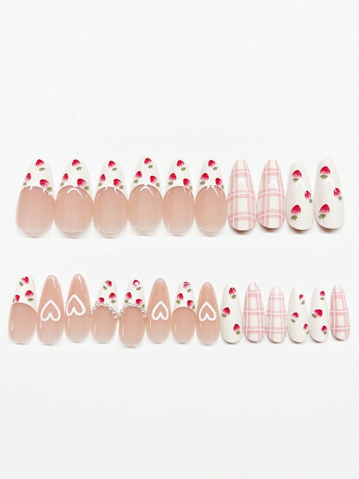 Kawaii 24pcs Lovely Sweet Detachable Full Cover Strawberry Nail Art Set