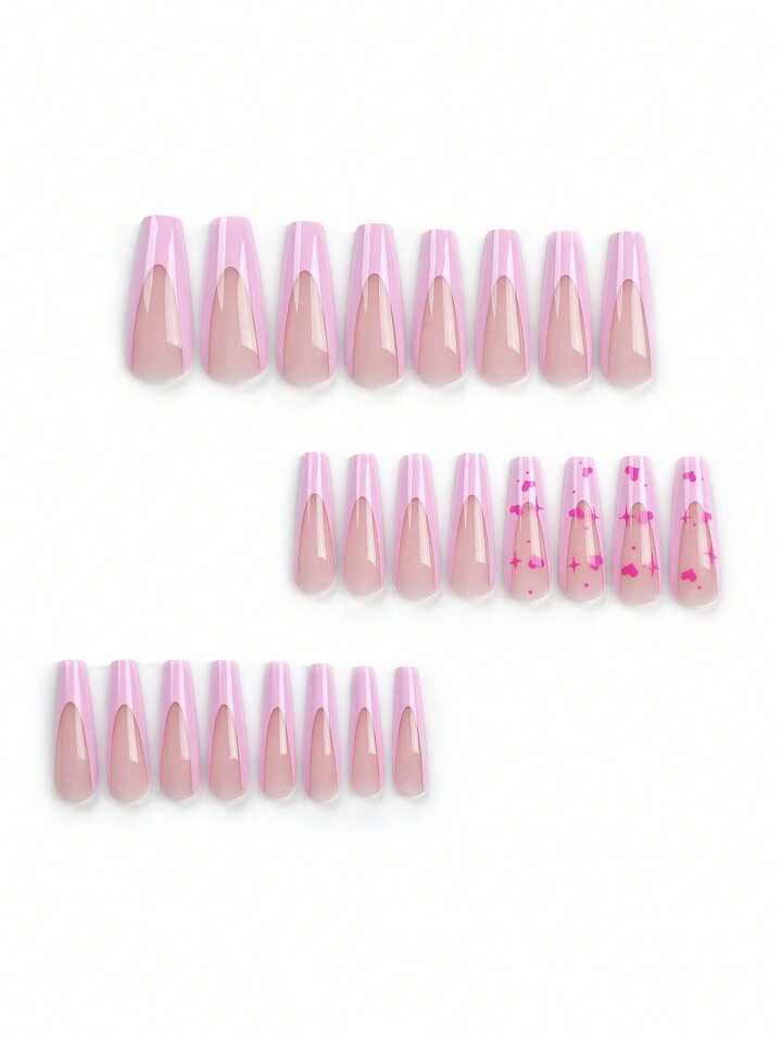 Kawaii 24pcs/Set French Heart & Star Design Full Wrap Nail Tips With Removable Adhesive