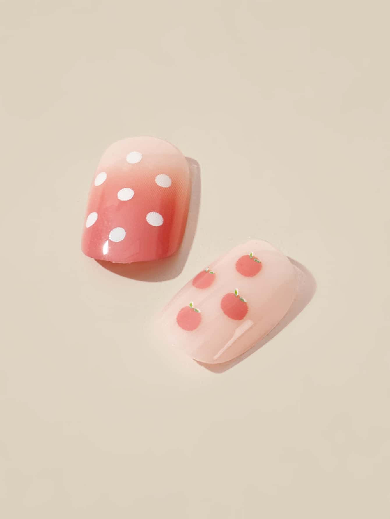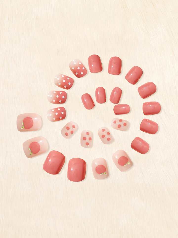 Kawaii 24pcs Square Peach Print Fake Nail & 1sheet Tape