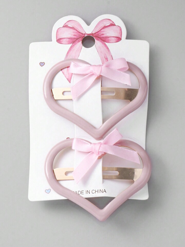 Kawaii 2pcs Korean Style Cute Pink Heart & Bowknot Alligator Clips Side Hair Accessories Set, Graduation Gift Valentines
