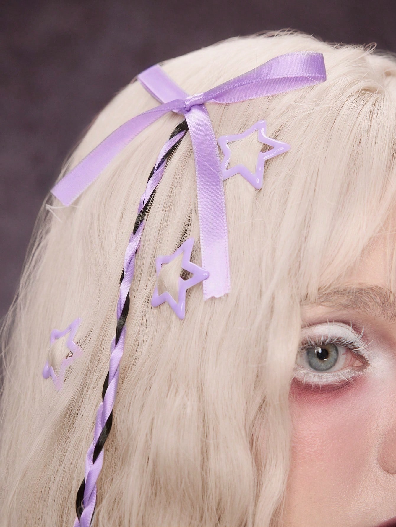 Kawaii 2pcs Ribbon Bow Hair Clips + 8pcs Star Mini Hairpins, Cheer Color Coordinated Hair Accessory Set, Suitable For Daily Wear And Party Styling