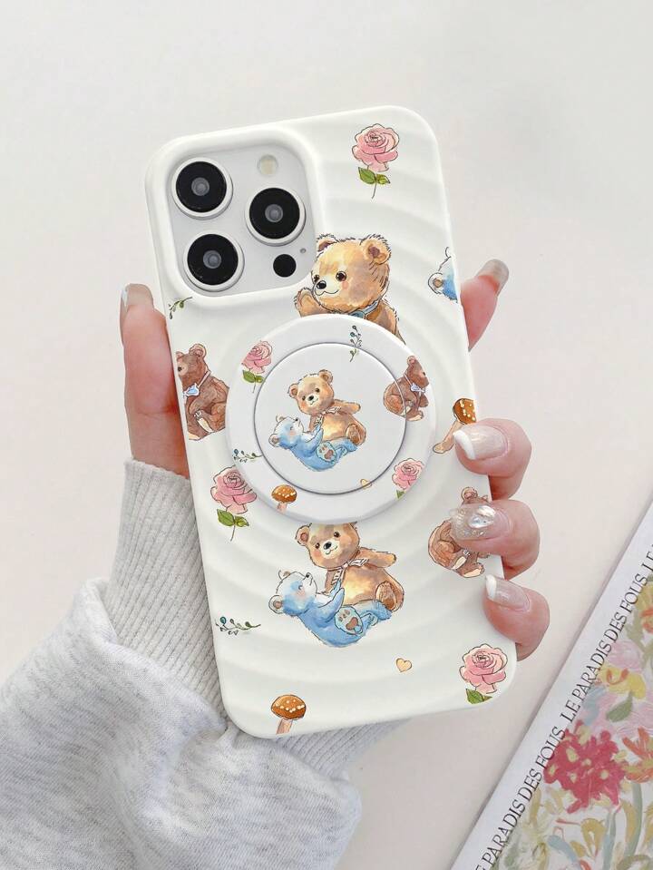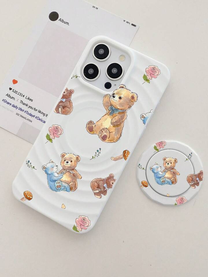 Kawaii 2pcs/Set Cartoon Bear Print Magsafe Magnetic Wireless Charging Phone Case With Magnetic Holder