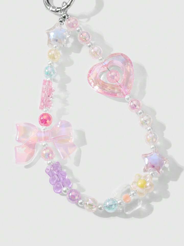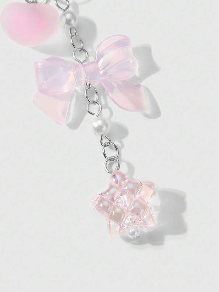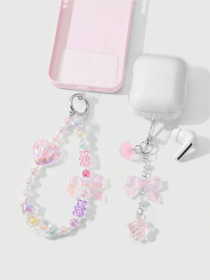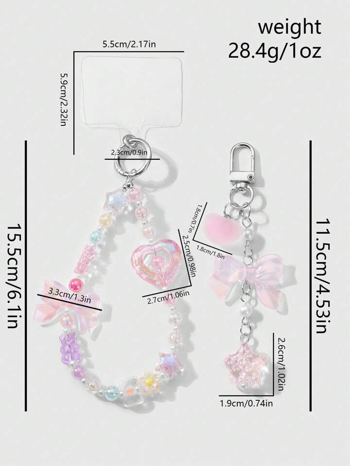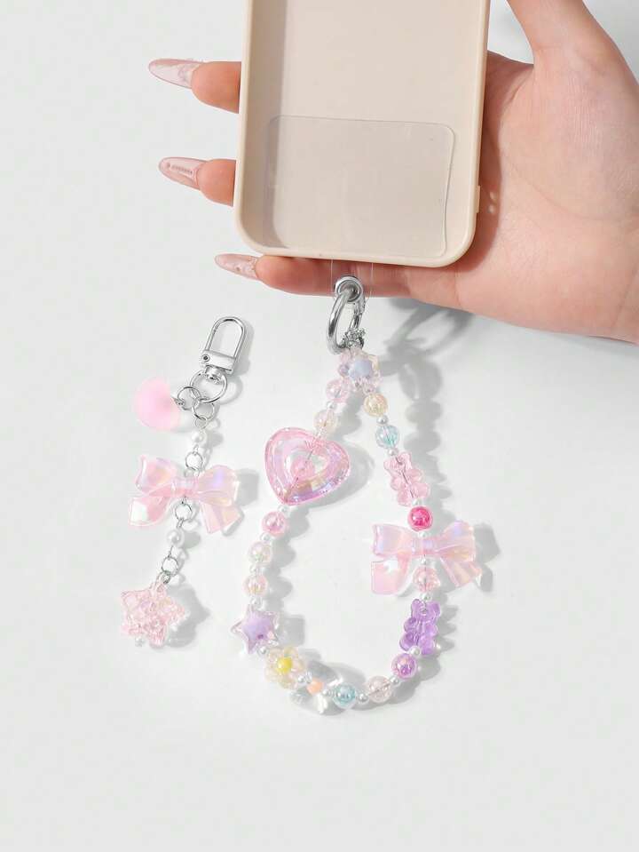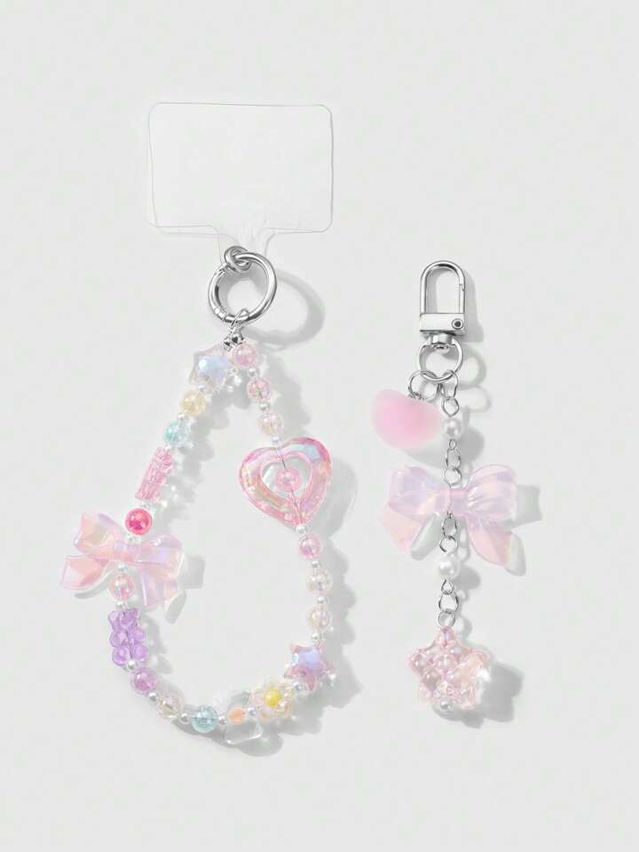 Kawaii 2pcs/Set Luxurious & Sweet Girl's Handmade Beaded Imitation Crystal, Pearl, Resin Heart, Butterfly, Bear, Star, Cherry Blossom Pendant, Suitable For Phone Strap, Card, Key Chain, Bag Accessories, Great Gift For Sisters, Best Friends, Couples, Daily Wear And Festivals