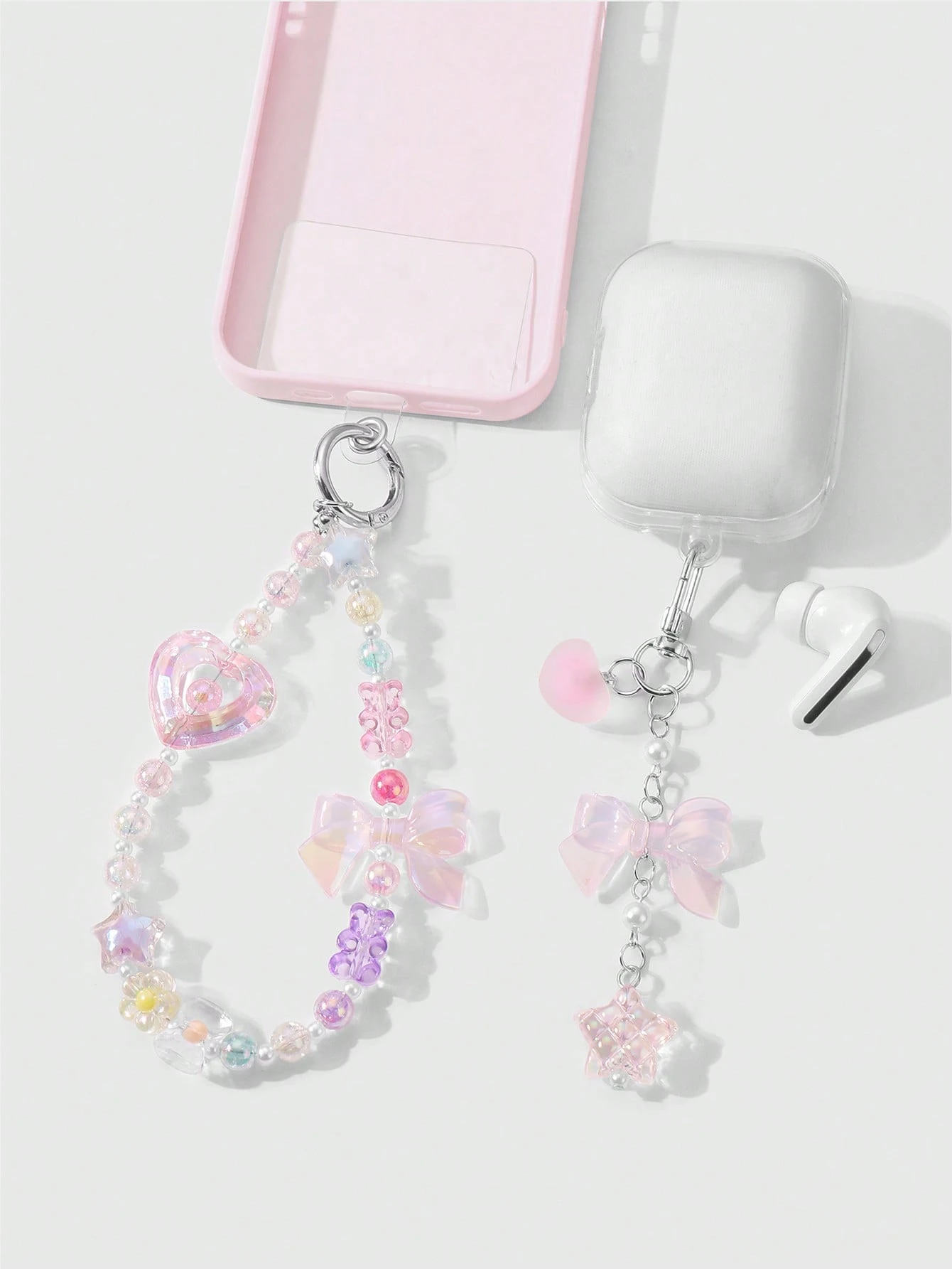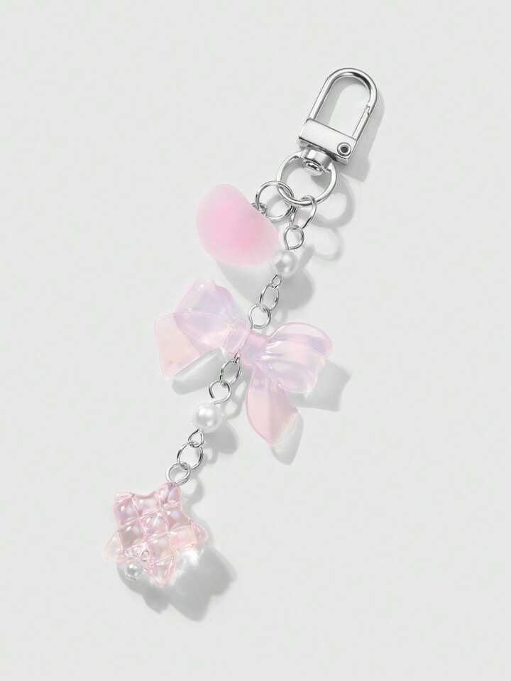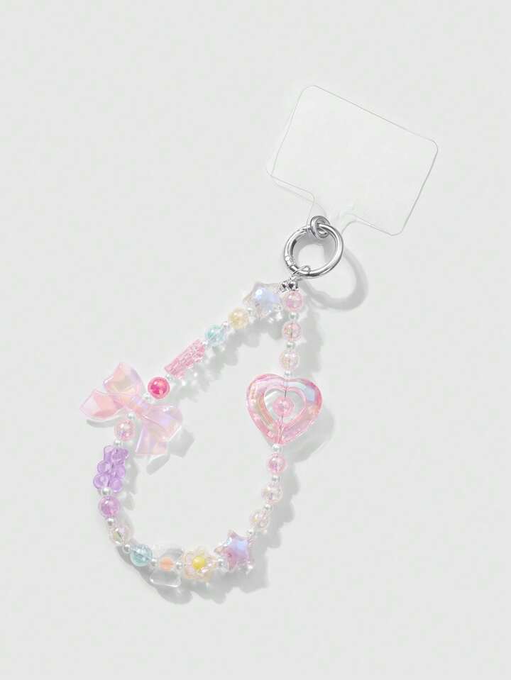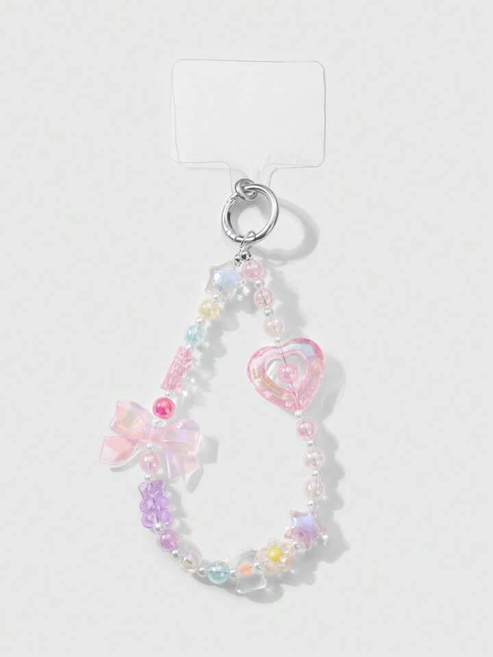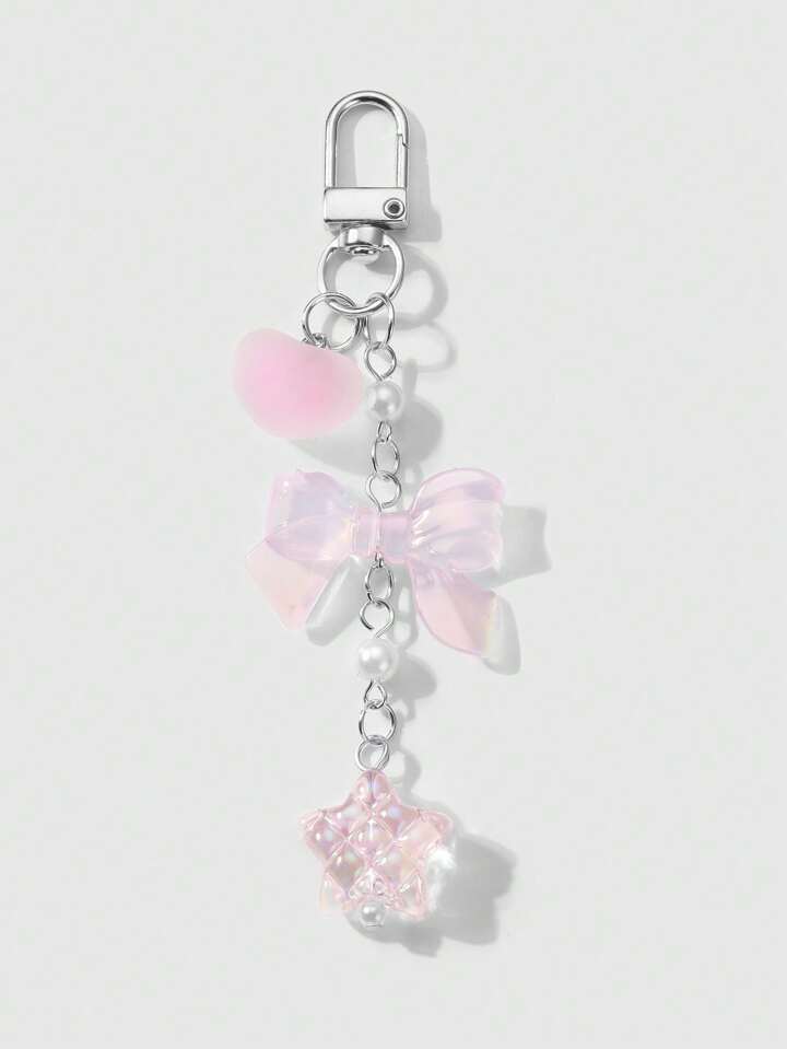 Kawaii 2pcs/Set Luxurious & Sweet Girl's Handmade Beaded Imitation Crystal, Pearl, Resin Heart, Butterfly, Bear, Star, Cherry Blossom Pendant, Suitable For Phone Strap, Card, Key Chain, Bag Accessories, Great Gift For Sisters, Best Friends, Couples, Daily Wear And Festivals