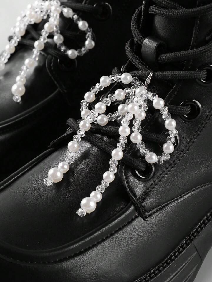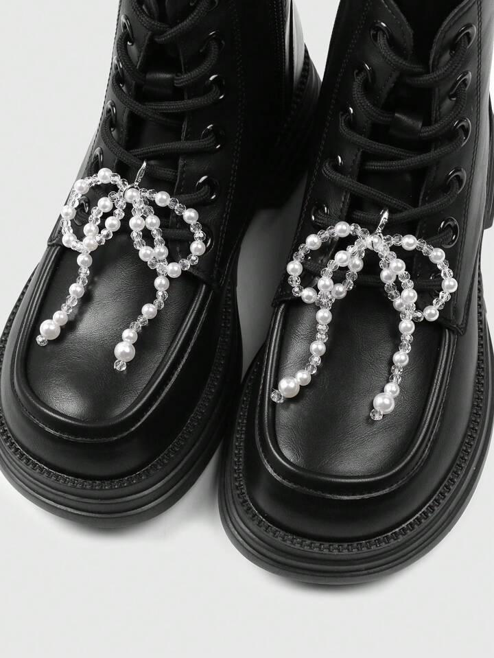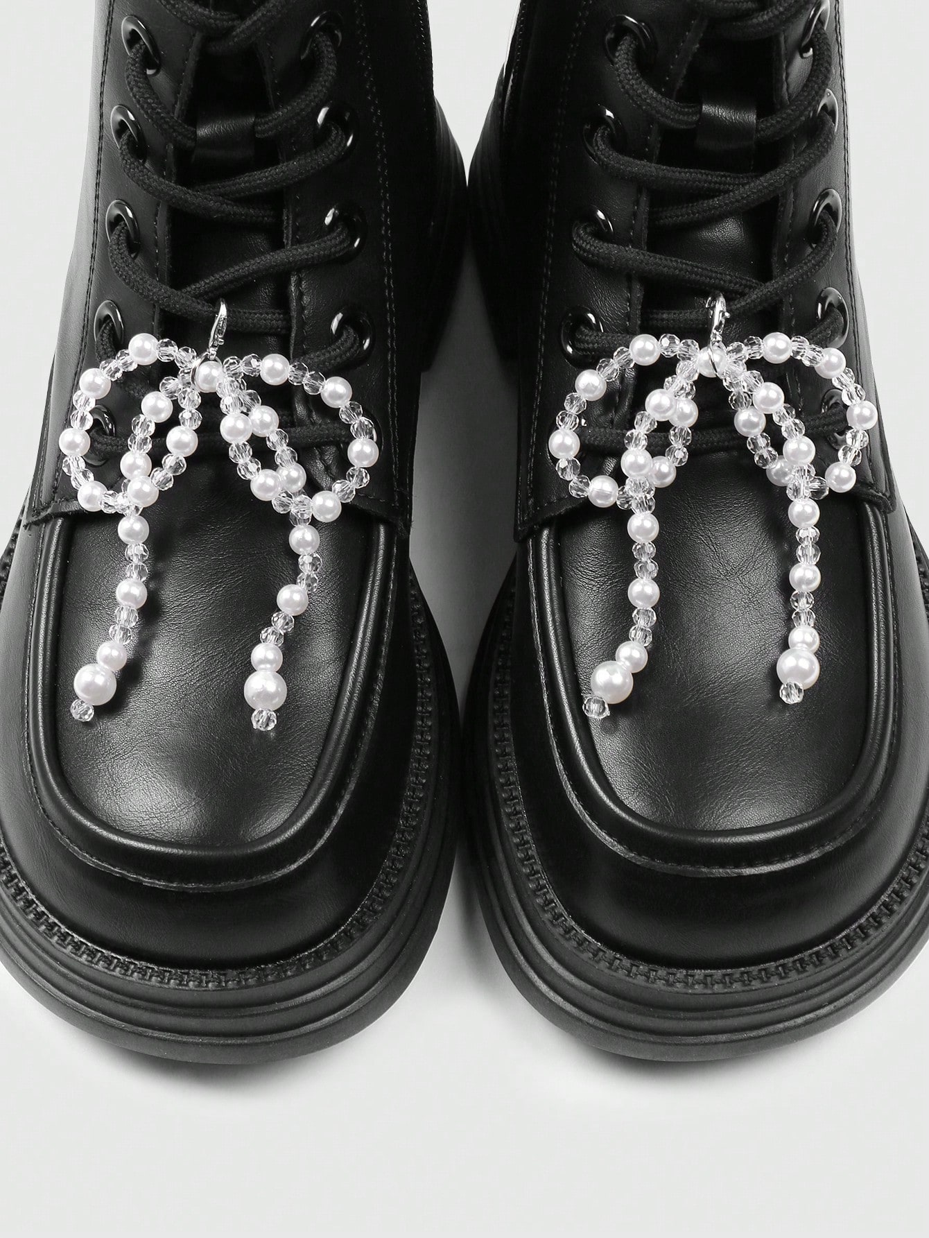 Kawaii 2pcs Sweet Minimalist Handmade Beaded White Faux Crystal Pearl Bow Shoe Accessories, Suitable For Girls And Women Daily Outfit And Holiday Gift