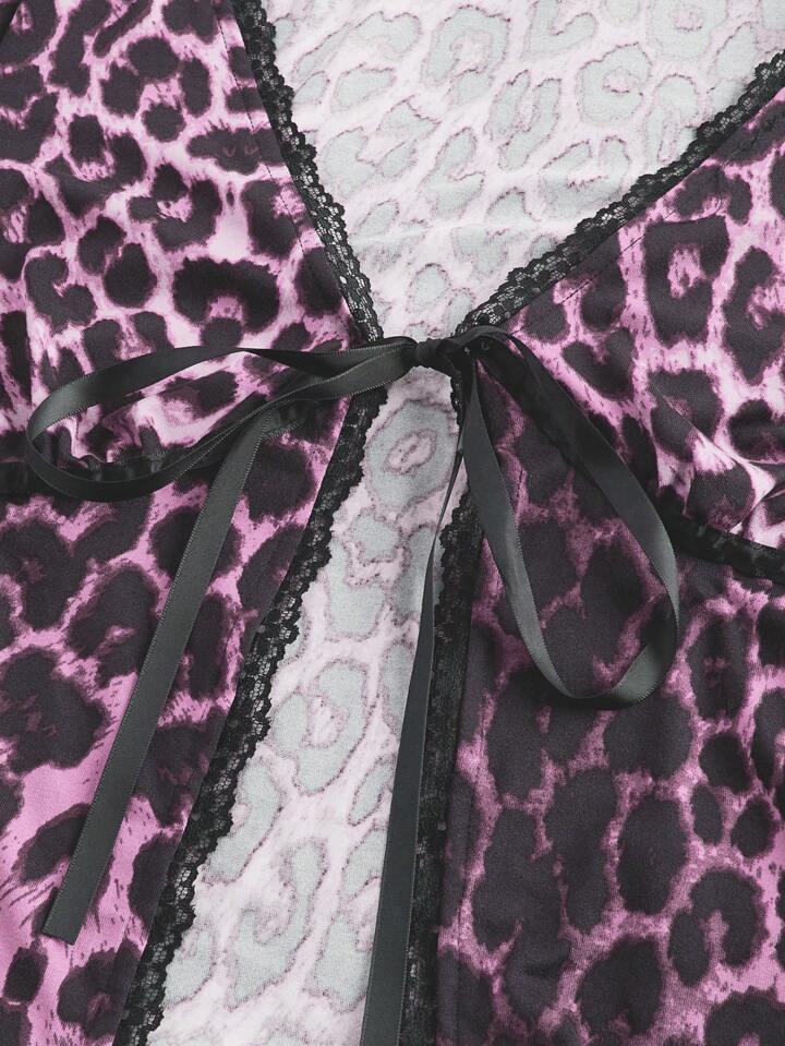 Kawaii 2pcs Women Y2K Vintage Leopard Print Ribbon Tie Cardigan And Ruffles Shorts Set