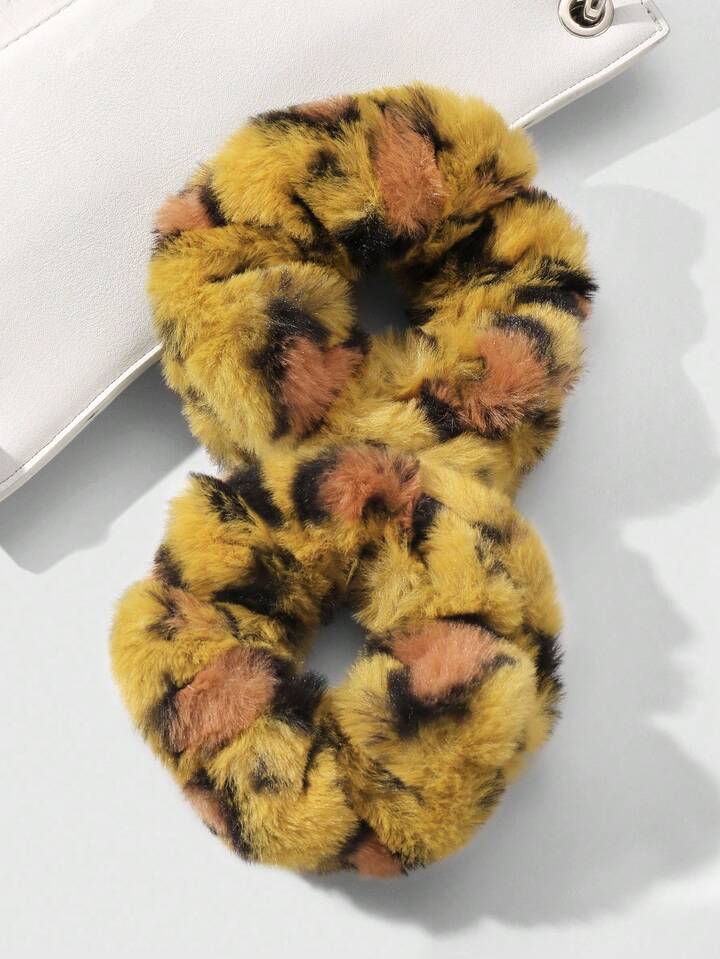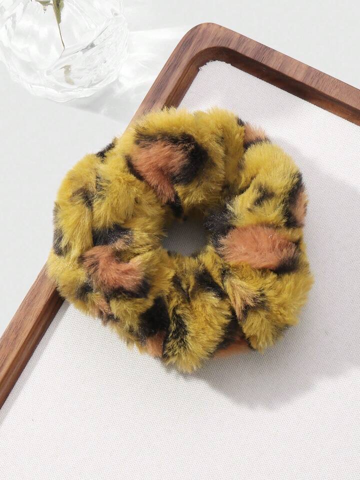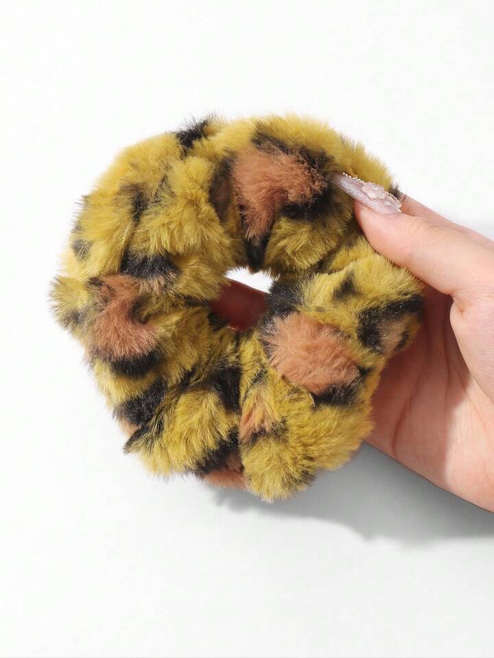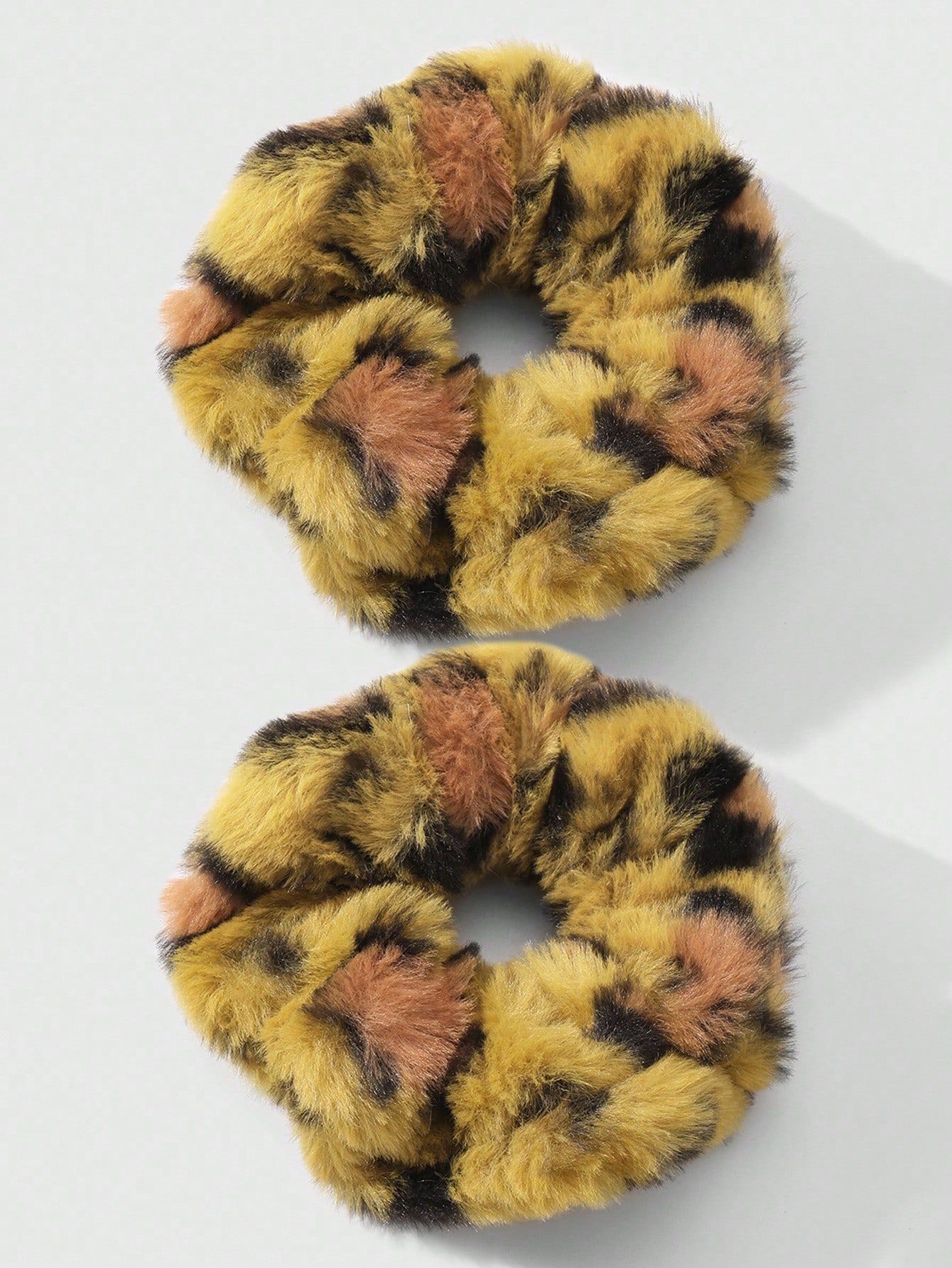 Kawaii 2pcs Y2K Retro Chic Leopard Print Fluffy Hair Scrunchies Set, Fashionable Accessories Suitable For Women, Girls, Daily Wear, Holiday Gift