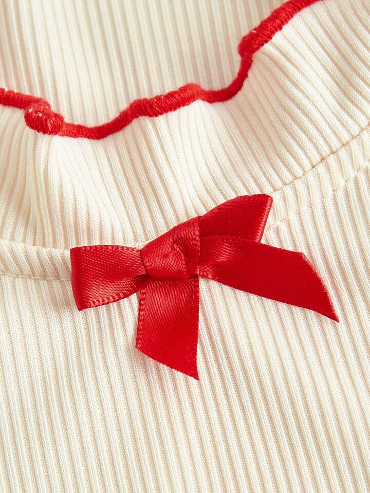 Kawaii 2pcs/set Contrast Trim Bowknot Detail Cami Top And Rib Knit Shorts Pajama Set