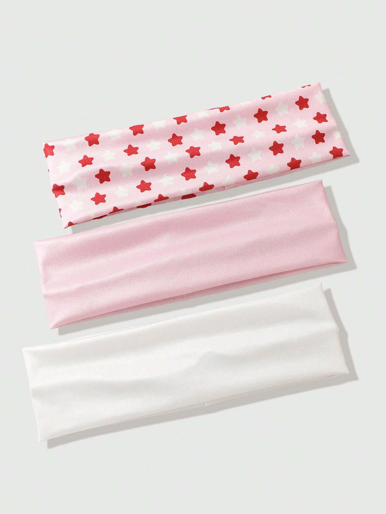 Kawaii 3Pcs New Spring And Summer Sweet Star Pink Headband, Suitable For Women's Daily Life And Outdoor Sports